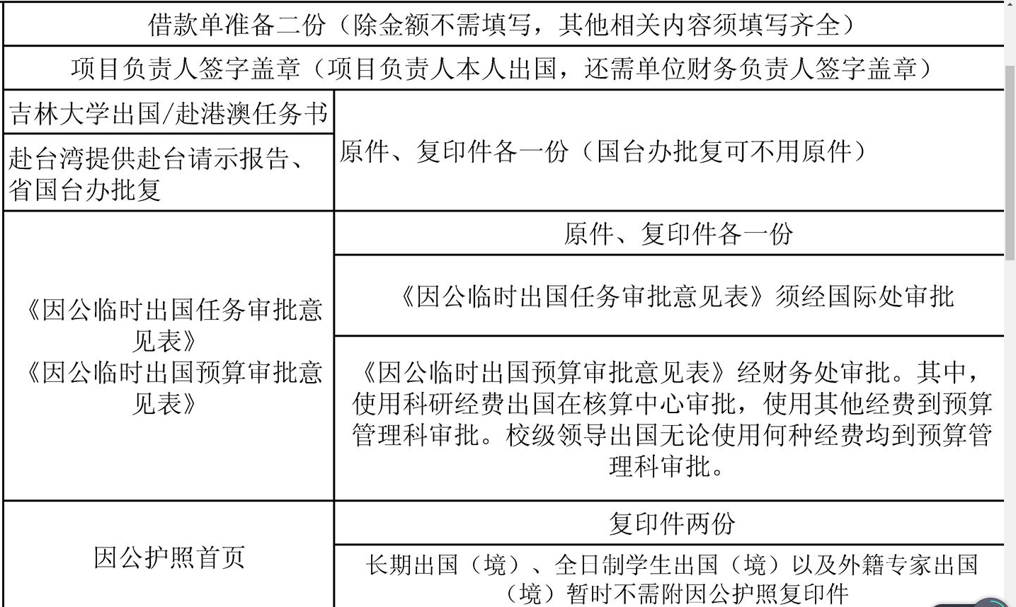 校内因公派出手续须提供材料: