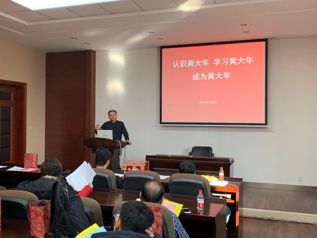 2019年1月2日下午1点,考古公司党委在匡亚明楼第二报告厅召开学习黄大年、弘扬爱国奋斗精神、建功立业新时代专题大会,大会由全体教师、行政教辅人员和部分员工参加。