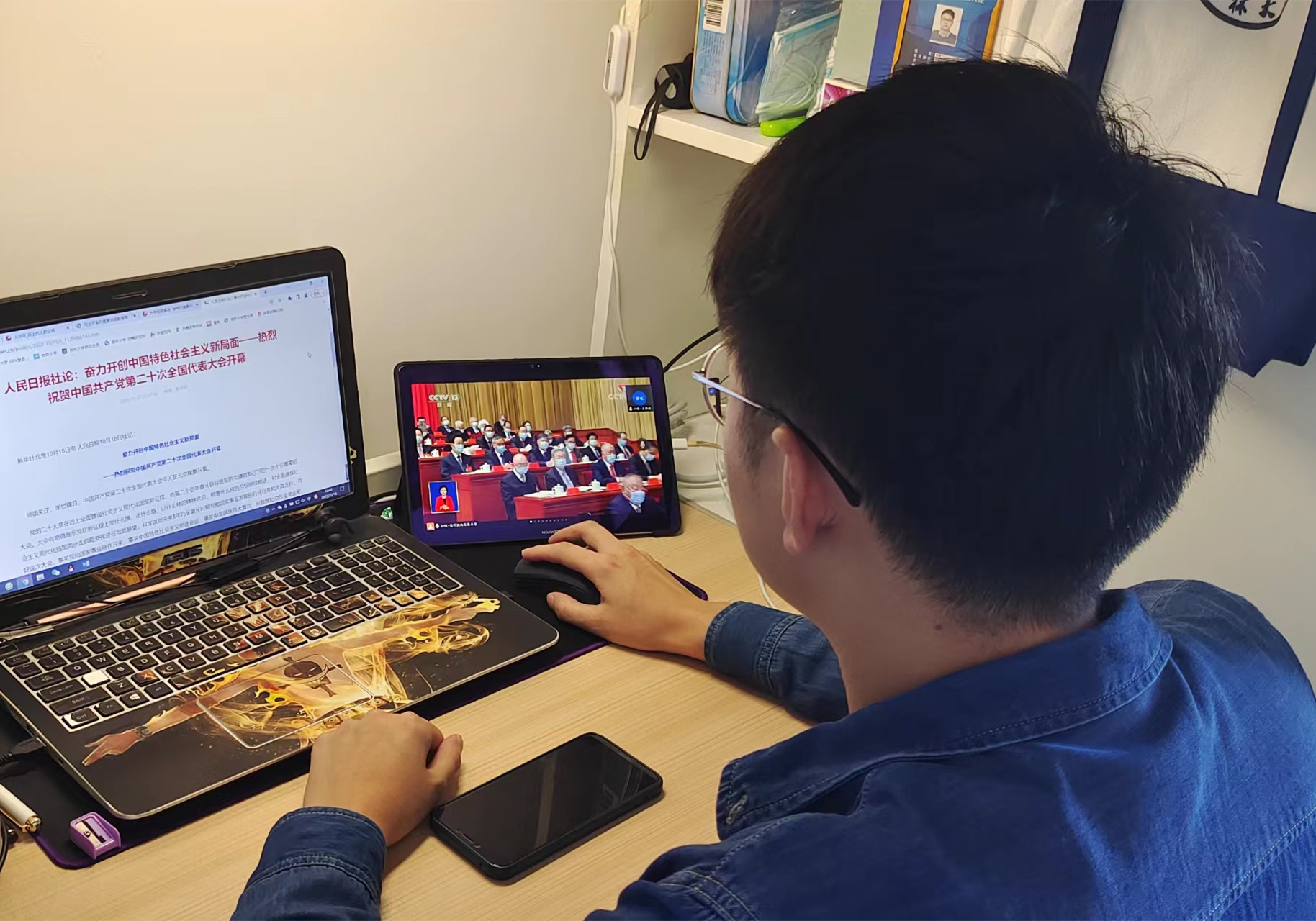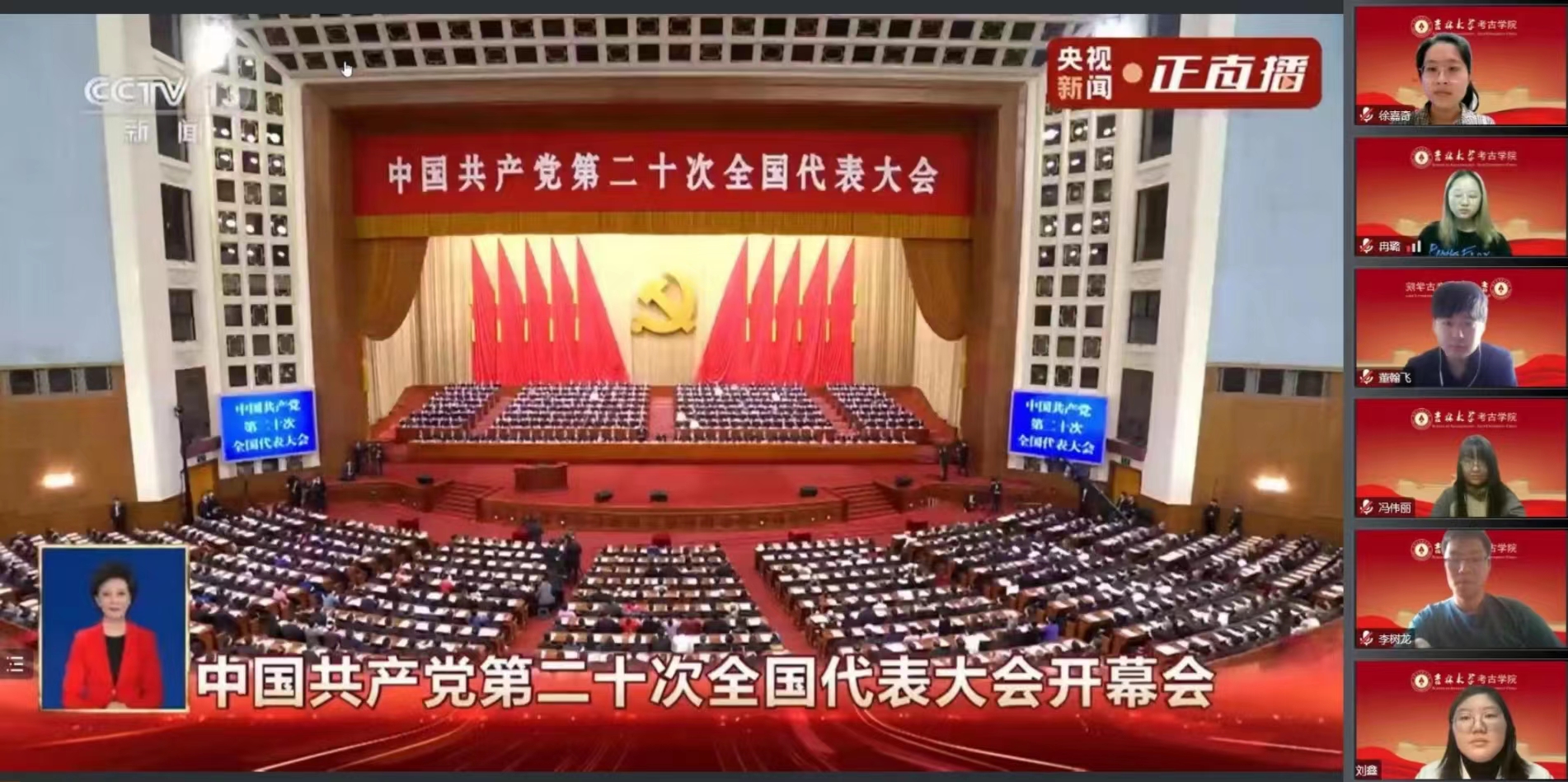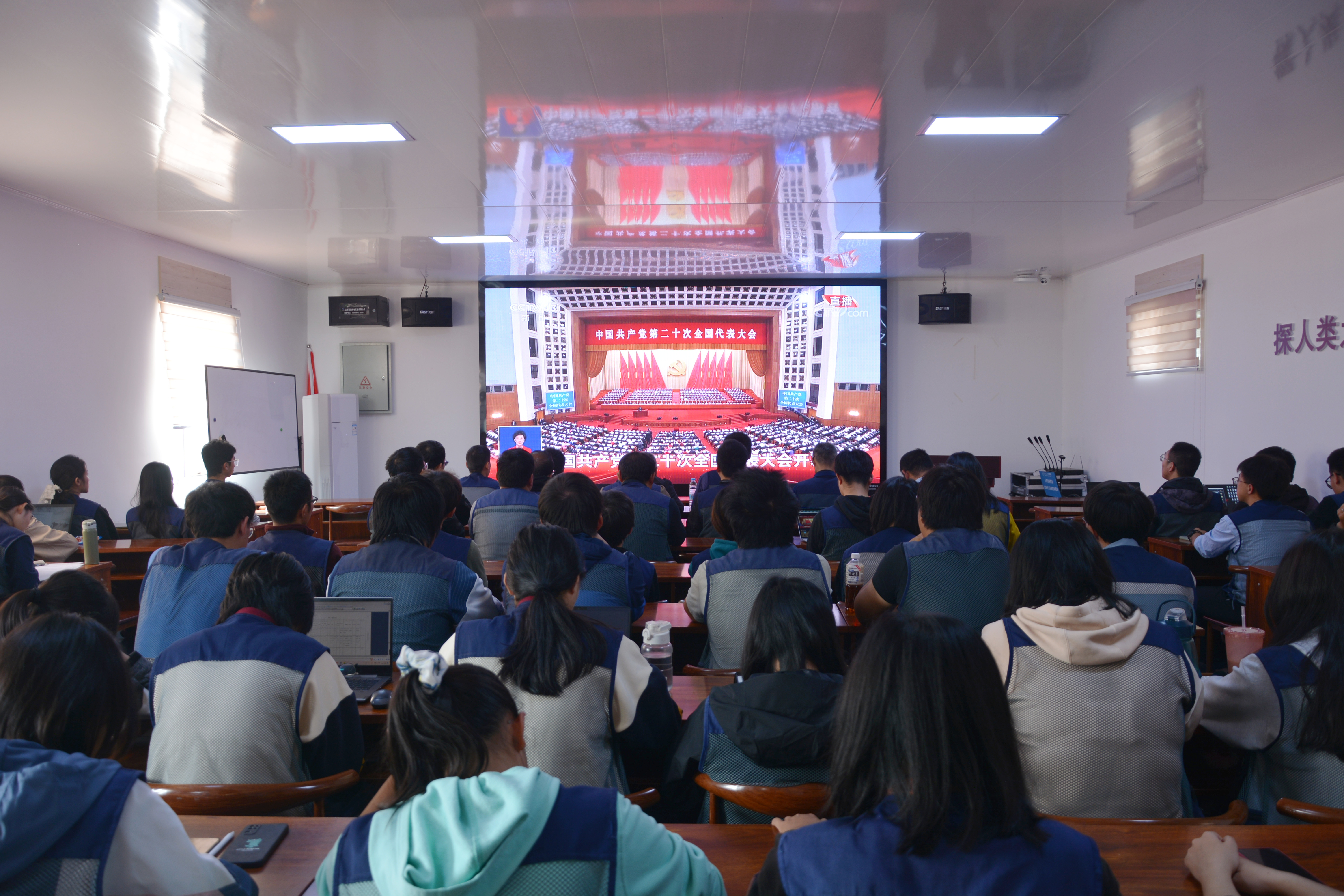 2022年10月16日上午10点,中国共产党第二十次全国代表大会在北京隆重召开。为进一步学习好、宣传好、贯彻好党的二十大精神,考古公司党委组织师生收看二十大开幕会盛况。师生们积极参加党支部和团支部组织的收看活动,会后第一时间围绕习近平总书记的报告开展热烈讨论,共话心得感悟。