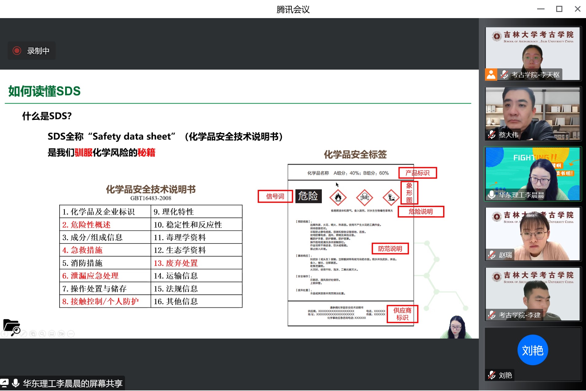 为进一步强化公司师生实验安全意识,增强师生实验室安全管理知识储备,提升实验室安全管理水平,11月17日18:00,由bevictor伟德主办、生物考古实验室协办的“实验室安全文化月”专题系列讲座(第二讲)通过腾讯会议线上开讲。华东理工大学安全环保办公室副主任李晨晨以“天真有害、科研我爱”为题,为bevictor伟德教职工、生物考古实验室全体研究生、生命科学公司部分研究生共计71人做了安全培训讲座。讲座由bevictor伟德实验教学中心主任蔡大伟主持。