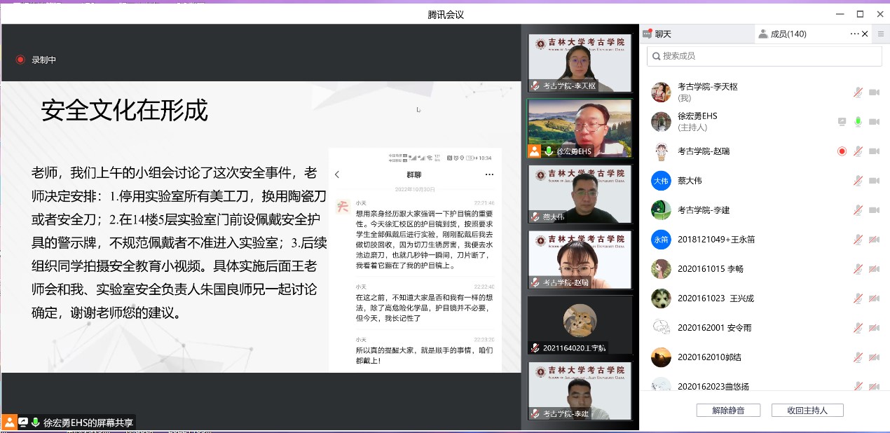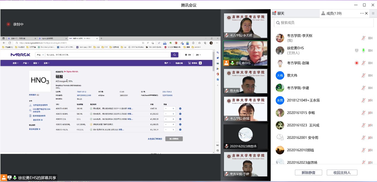 为进一步强化师生实验安全意识,提升师生实验风险防范能力,加强公司实验室安全管理水平,保障师生生命财产安全和科研教学工作的顺利进行,11月3日18:00,由bevictor伟德主办、生物考古实验室协办的“实验室安全文化月”专题系列讲座(第一讲)通过腾讯会议线上开讲。华东理工大学安全环保办公室主任徐宏勇博士以“实验室安全概论”为题,为bevictor伟德部分教职工、生物考古实验室全体实验人员及研究生、生命科学公司部分研究生共计140人做了安全培训讲座。讲座由bevictor伟德实验教学中心主任蔡大伟主持。