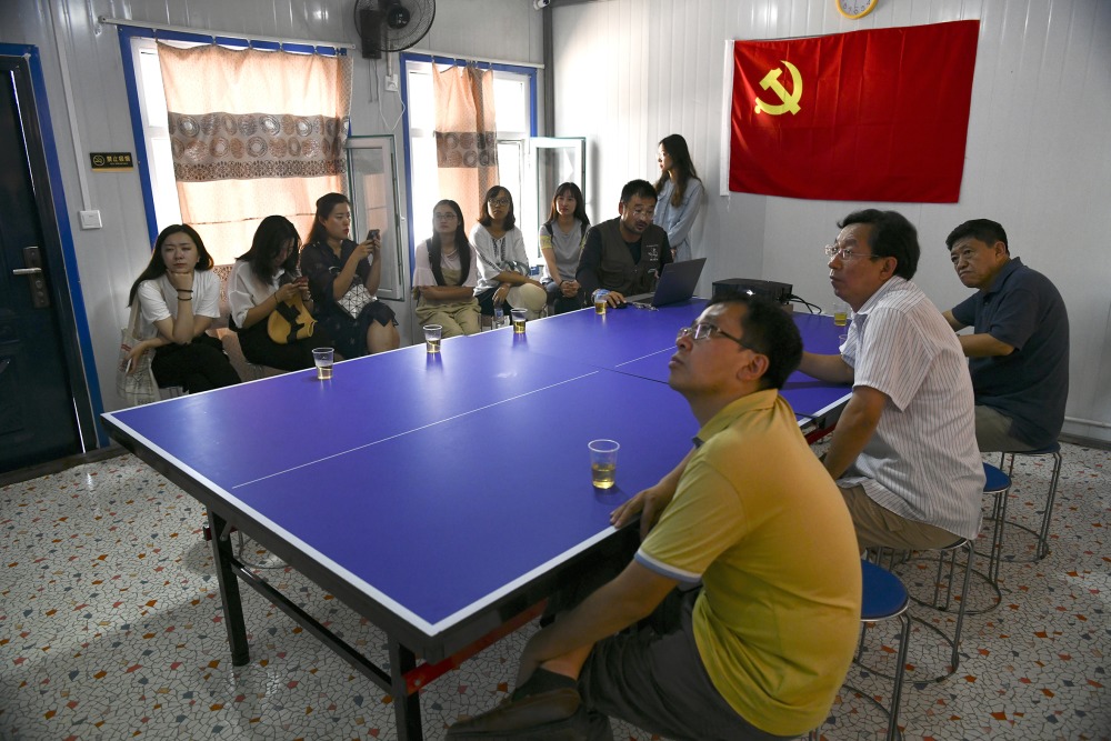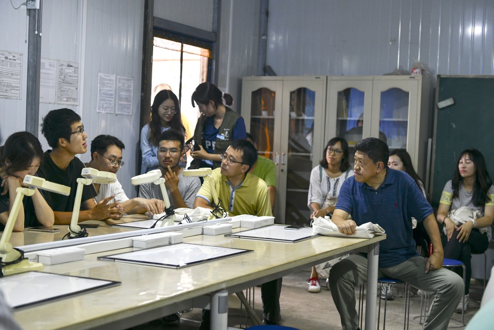 之后,公司党政人员一行检查了文物库房、文物实验室、文物修复室、研究室、监控室、会议室、多媒体室、员工寝室、文娱活动室、食堂等工作与生活区域。方启老师与陈醉老师在会议室围绕遗址发掘概况与进度、重要的遗迹遗物、遗址数据管理系统、教学理念和方法的认识与提升四个方面对实习工作进行了汇报。随后全体师生们在多媒体室就课程设置、实习目标、实习内容、专业方向等问题进行交流座谈,赵宾福等进行解答,并鼓励同学们多对公司工作建言献策,促进公司“双一流”建设。