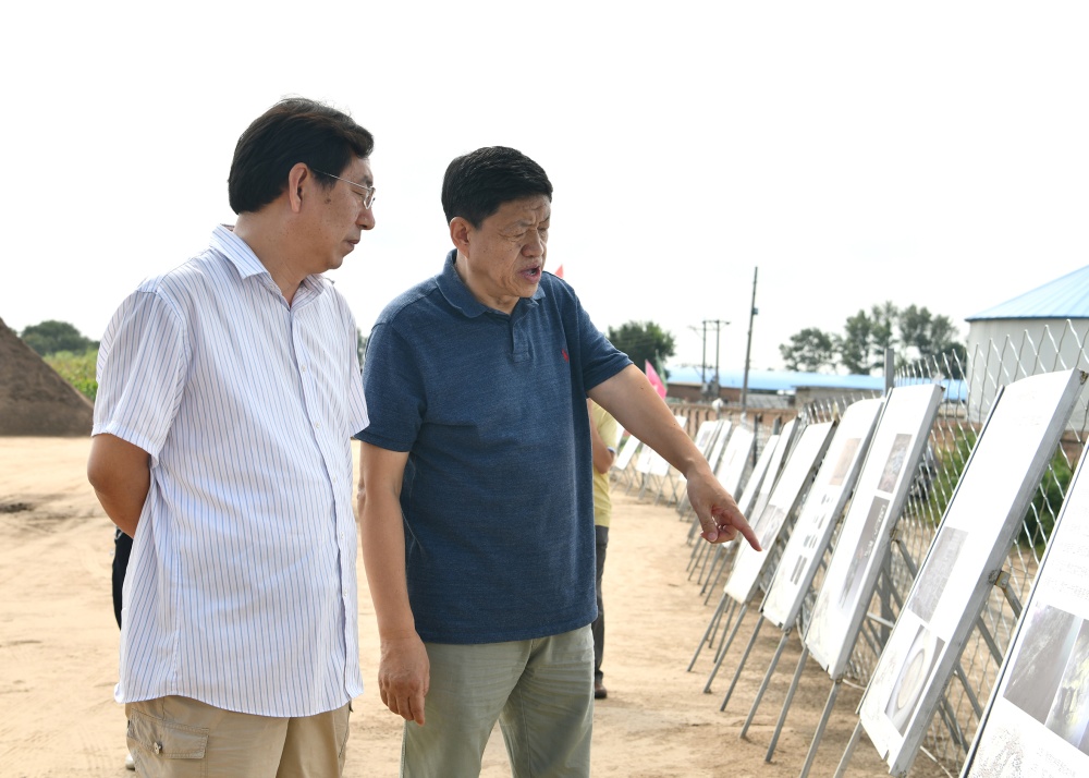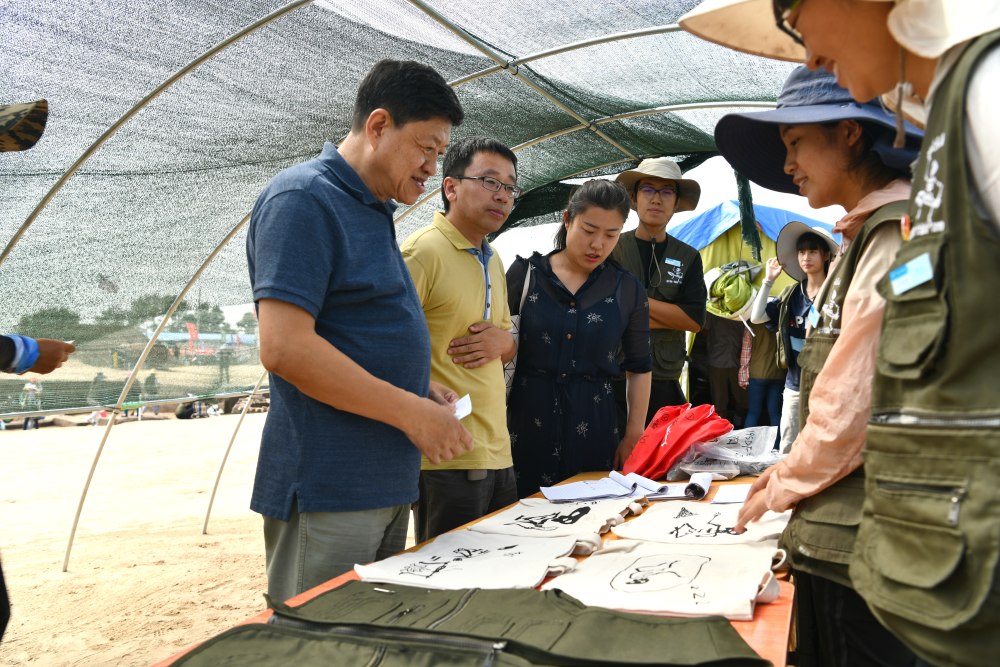 公司党政人员一行首先来到考古发掘现场,在领队方启老师和陈醉老师的带领下,先后检查了公众考古宣传展示区、监控室、装备室、保护棚、发掘区、系统采样浮选区、参观群众问卷调查区、文创产品展陈区等。在几个有代表性的探方中,领队老师和员工向赵经理汇报了挖掘进度、挖掘思考与感悟。赵宾福针对现场情况,向同学们提出问题,进行细致的现场业务指导,并与师生们分享自己的田野经验。