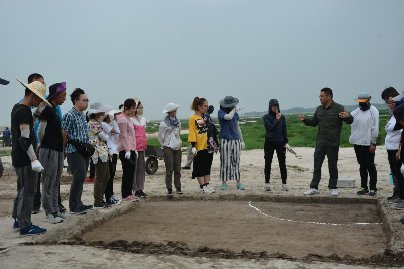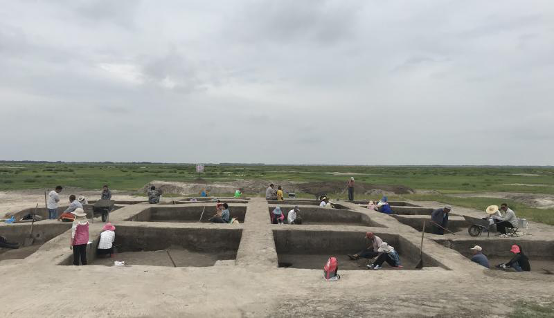 “捺钵”是契丹语,意为“行营”,根据文献记载,辽代皇帝农历每年春季会来到位于吉林省西部地区进行政事和游猎活动,这就是“春捺钵”的由来。七月的东北大地称不上“火炉”,但在城市里也是骄阳烈日,但在村子中似乎有一份别致的凉意,我们权且把这次实习定名为“夏捺钵”吧!也许是老天眷顾我们这些初下考古工地的娃儿们,初来乍到,十年九旱的乾安出现了少有的连日阴雨,多日的休整让我们很快适应了农村生活,但夜间也偶尔会被趴满玻璃的虫子吓到。几天以后,实习终于开始进入正轨,规律的生活、规律的饮食、规律的工作,我们很快进入了田野考古实习应该有的节奏。