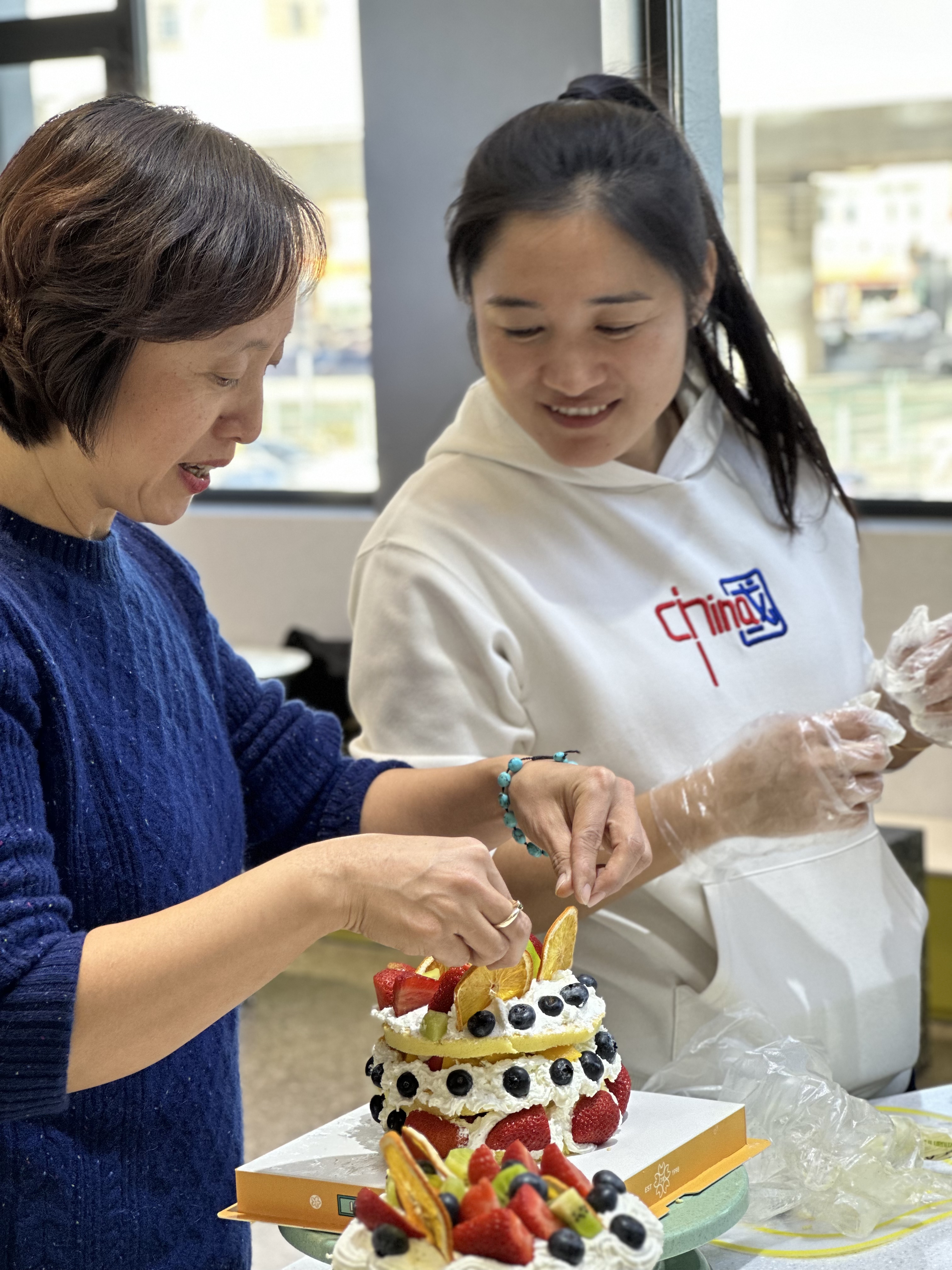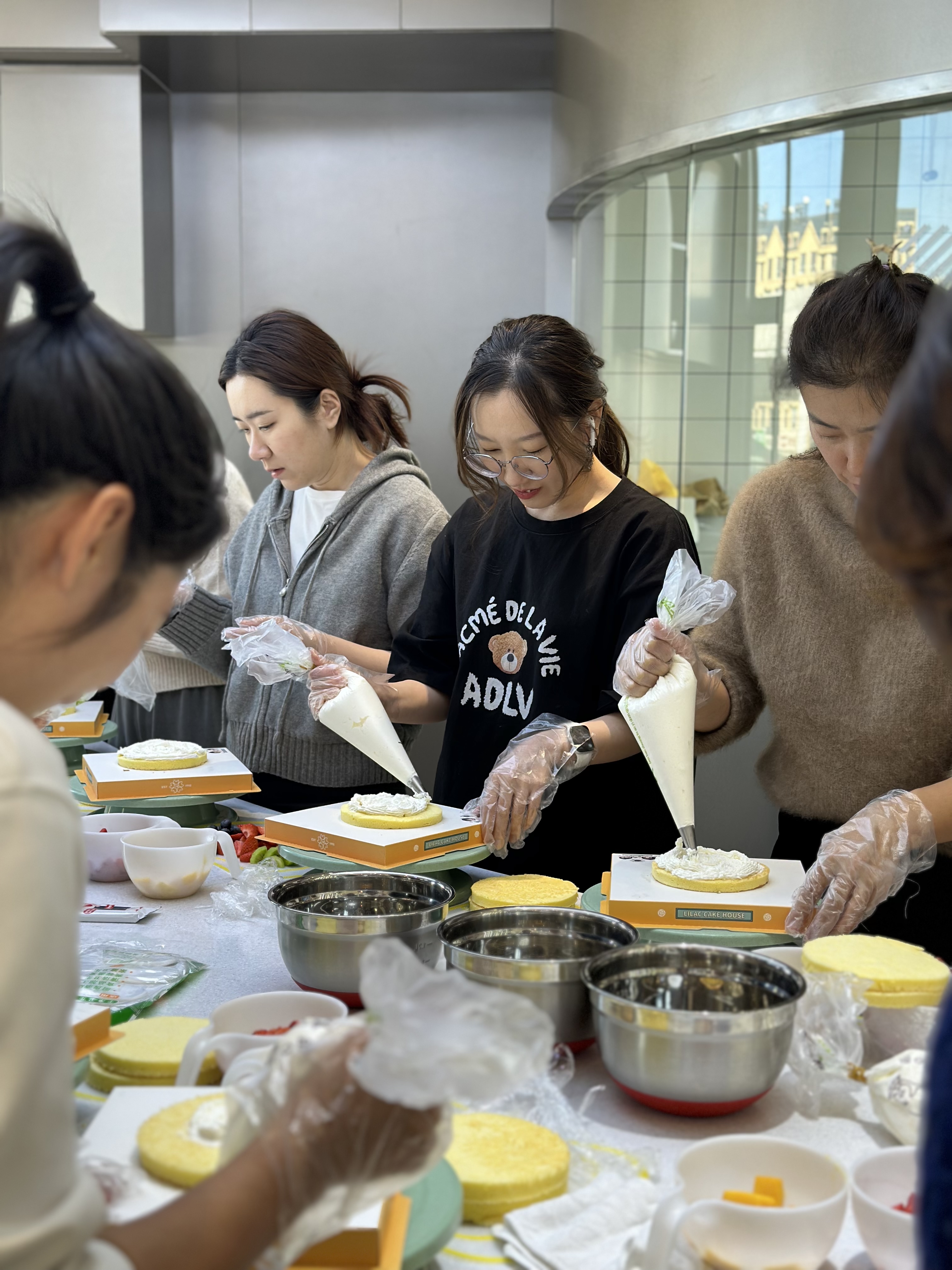 为组织好本次烘焙活动,bevictor伟德精心挑选烘焙场地与食材,最终确定离校园最近方便大家出行的丁香西饼屋(国泰店)。烘焙活动当天,丁香西饼屋的西点师向大家介绍了要做的蛋糕类型、用料和操作用具,一边细心讲解制作方法,一边现场操作,大家迫不及待地跟随着步骤亲自动手,在蛋糕胚上涂抹奶油、摆放水果,欣赏各自的作品并拍照留念,现场充满了欢声笑语。