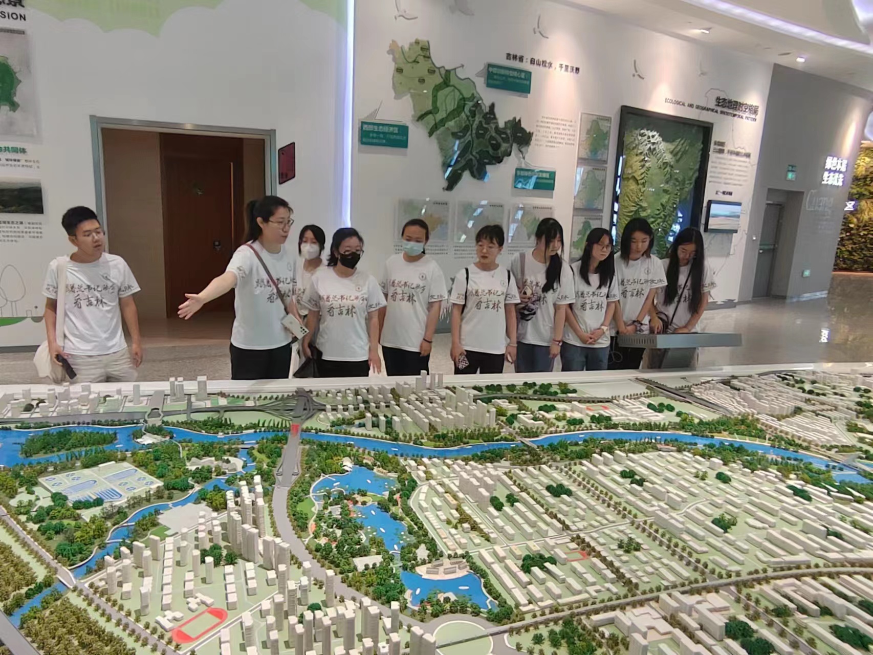 长春市城乡规划展览馆是展示城市形象、历史人文、建筑艺术以及规划发展的窗口,是与市民进行双向沟通的重要纽带。实践团队参观了长春“城市沿革”“科学规划”“未来探索”三大展区,见证长春从规划完善的近代工业城市发展为现代高精尖智慧城市的历程,体会城市面貌及建设理念的变化,感悟长春发展高精尖产业的毅力与决心,增强青年责任感与使命感。