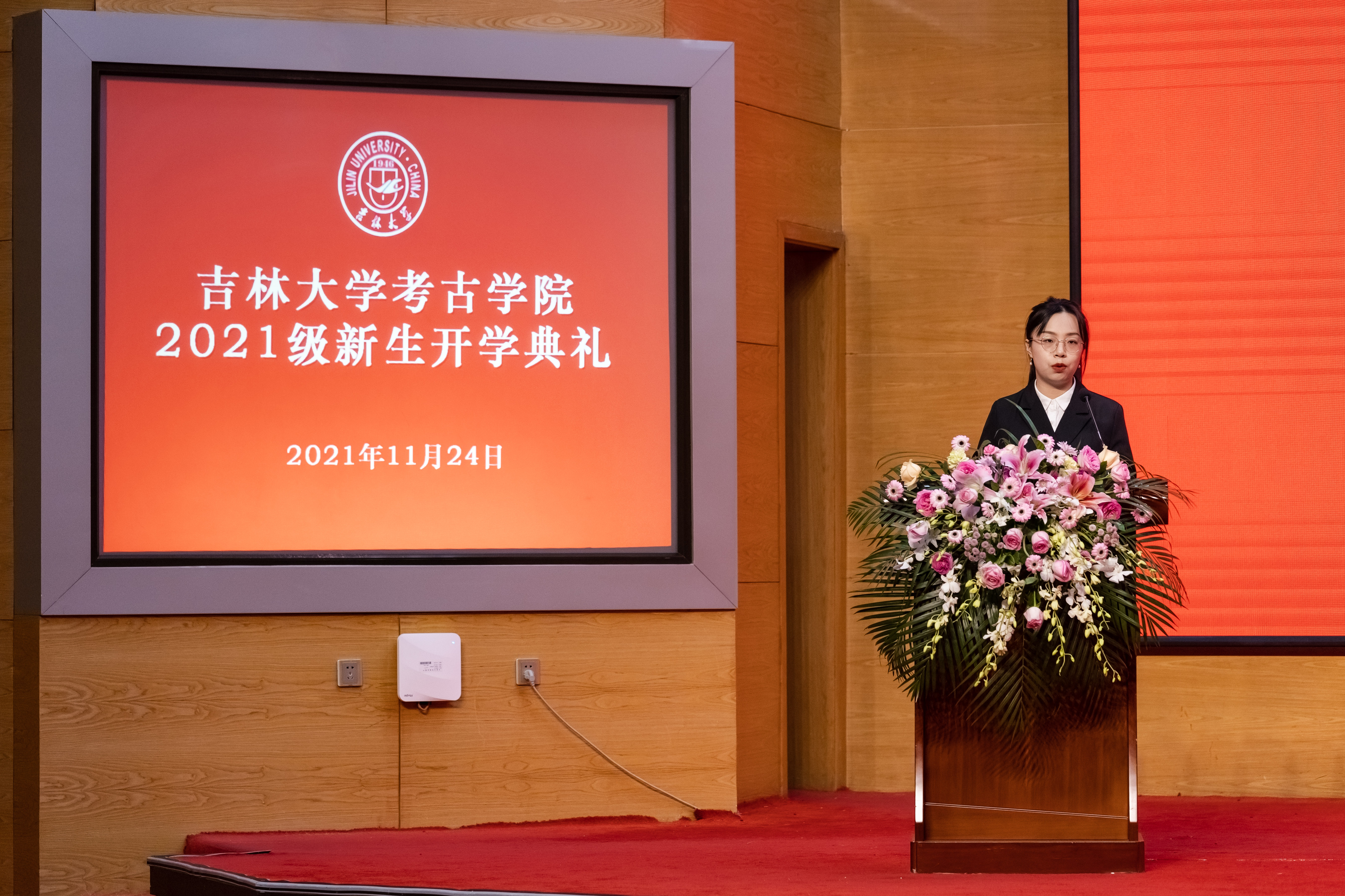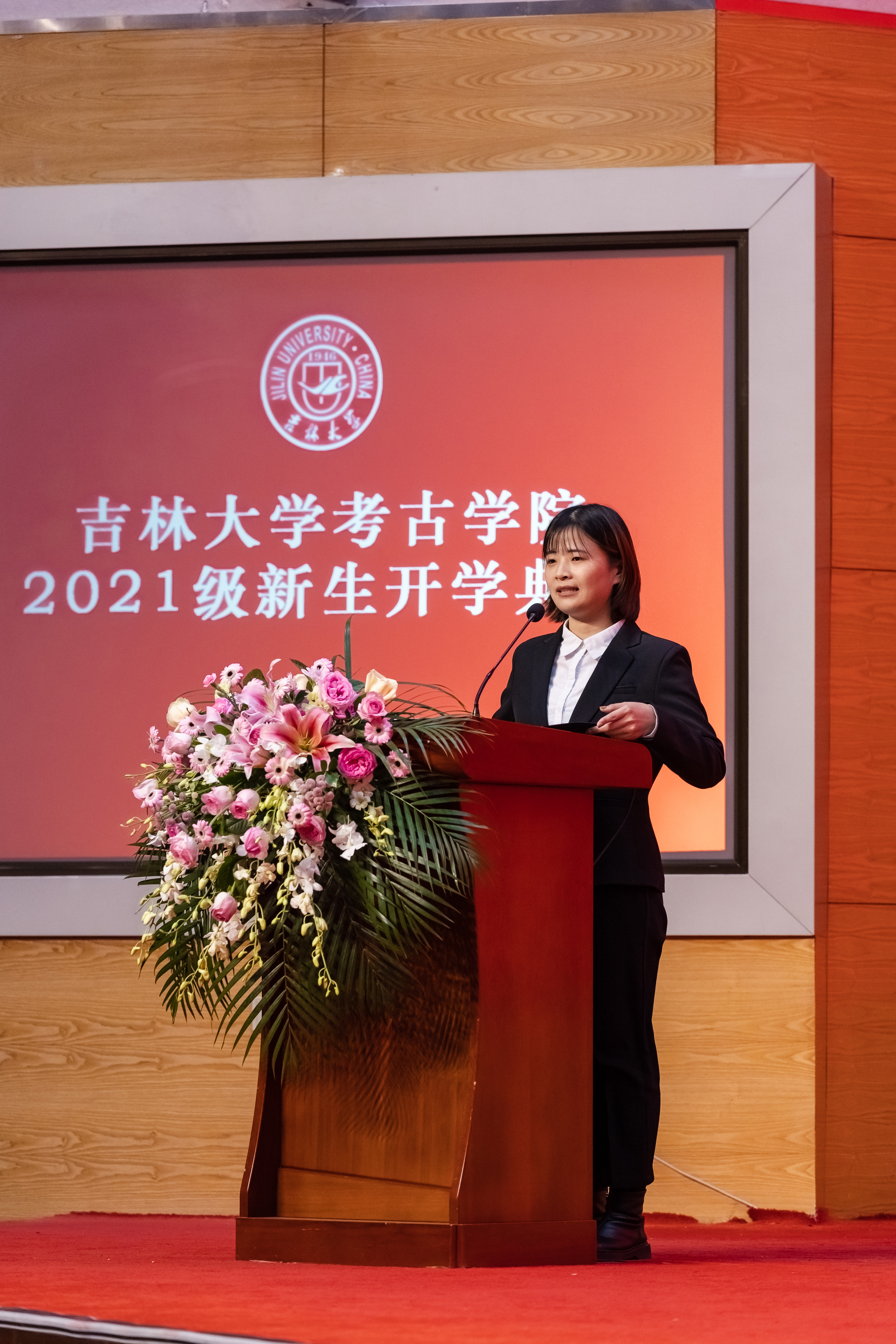 本科新生代表唐诗雨、硕士新生代表连胜男、博士新生代表邓梅格共同表达了对今后求员工涯的美好憧憬和对考古专业的无限热爱,呼吁同学们要学会思考、学会实践,努力把自己塑造成一名德才兼备的吉大考古人。