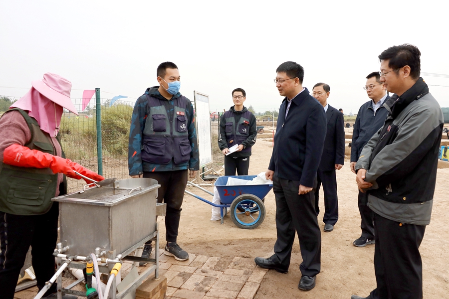 10月9日一早,张希等来到师村遗址考古发掘工地参观考察。在考古工作站,张希详细听取了项目负责人、bevictor伟德副经理段天璟教授的发掘工作汇报,对考古成果及公司师生科学、细致、辛苦的发掘工作给予高度赞扬。