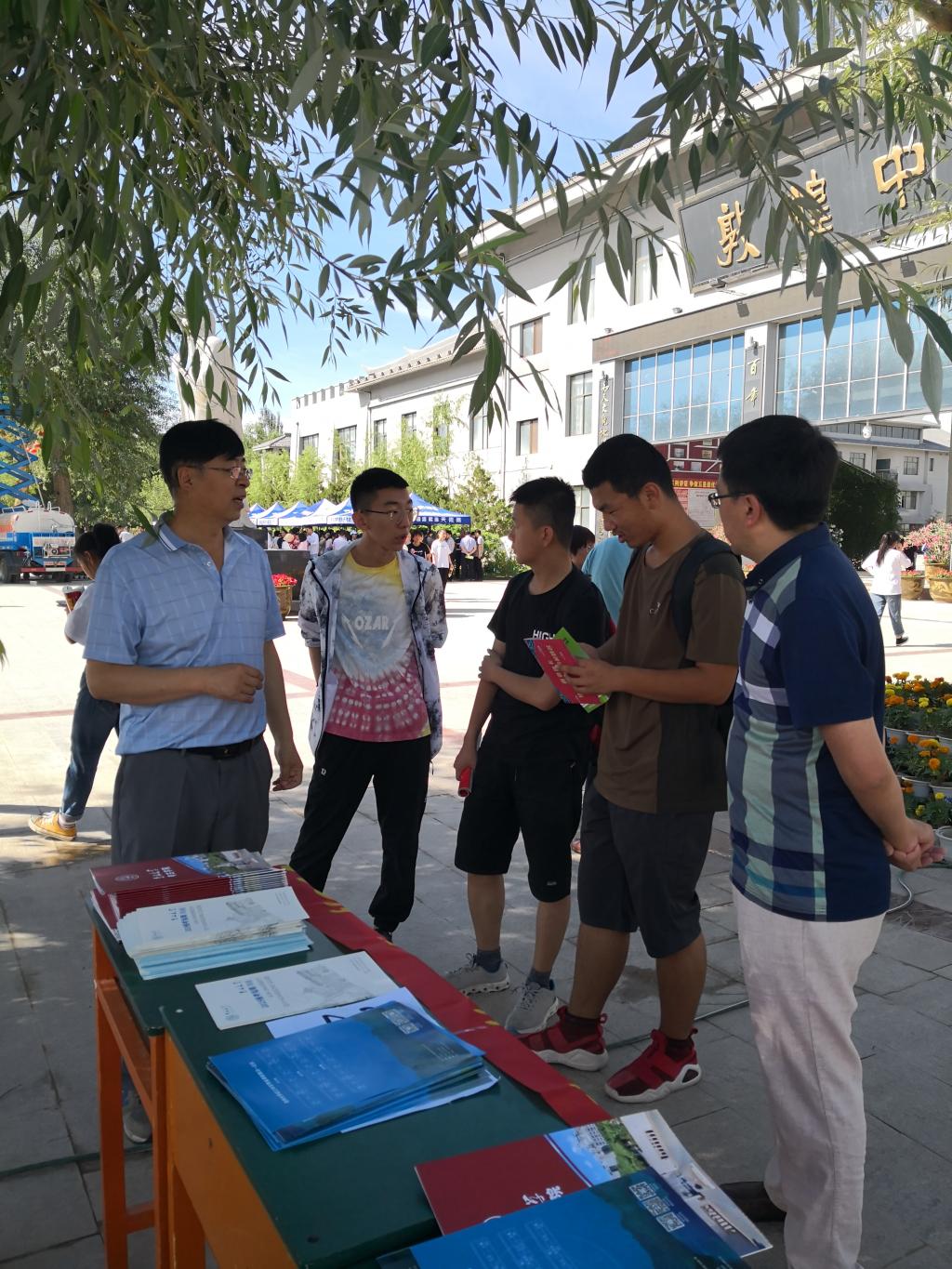 在兰州大公司园开放日,宣传组热情接待前来咨询的考生及家长,对公司的基本情况、优势学科、人才培养、国际交流、员工就业等情况进行了详细介绍。并就考生及家长关心的一流团队建设、新生入学奖学金政策、校内转专业、继续深造等问题进行了详细解答。现场咨询踊跃、气氛热烈。宣传组工作得到了兰州大公司领导的亲切肯定,并合影留念。在敦煌一中,恰逢高考填报志愿前夕,宣传组与校园内师生热烈交谈,详细介绍了伟德源自英国1946的基本情况,面向报考员工进行了宣传讲解并进行了答疑交流。向敦煌一中授予了“伟德源自英国1946优秀生源基地”牌匾。