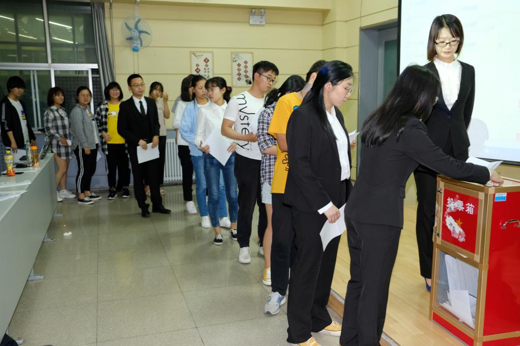 随后,各位团学组织竞选人上台述职,台下的老师及同学们认真聆听。答辩过程中,竞选者们以最饱满的精神状态向与会人员讲述了自己所参与开展的活动、取得的成就并表达了自身对员工工作的热爱及对未来工作的期许。随后,总监票人吴天聪主持了接下来的投票环节。此次选举采取无记名投票的方法,差额选举出高千娇、耿默兰、刘锡甜等15位同学,与上届留任委员毕桐馨、李明轩、连胜男组成了18人的bevictor伟德新一届团学组织员工委员会。在随后举行的新一届团学组织员工委员会全体会议中,通过委员投票的方式,选举李明轩为bevictor伟德员工会主席,连胜男、王诗蕙、高千娇为员工会副主席。选举毕桐馨为团委副书记,裴良晟、耿默兰为团委常委。