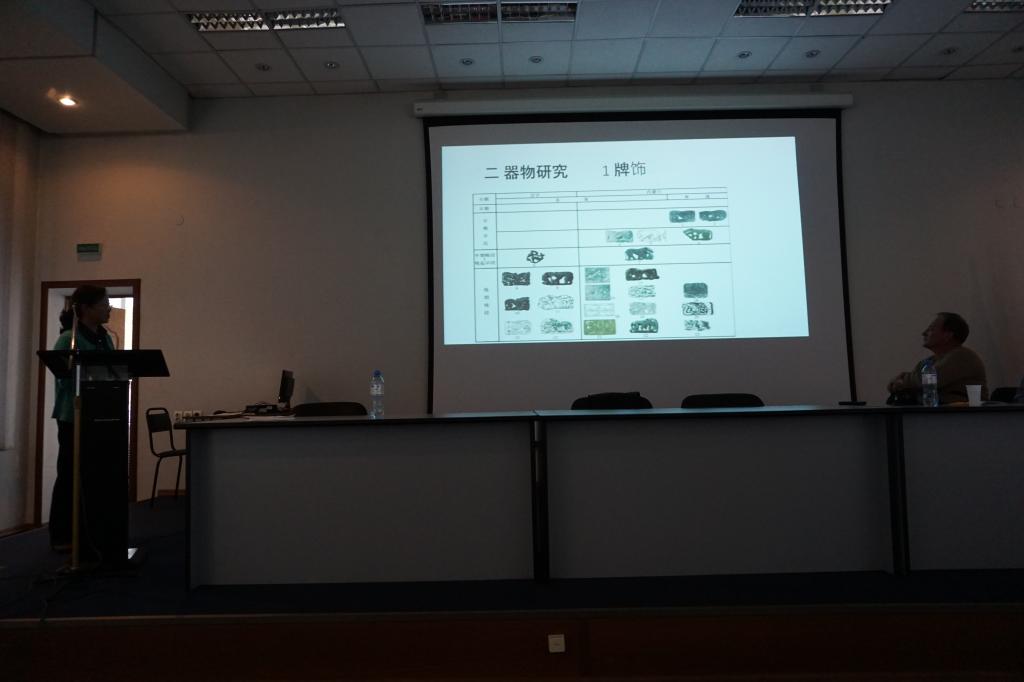 潘玲教授以《公元1-2世纪中国北方和蒙古的腰带具的演变》为题进行了大会发言,杨建华教授、王立新教授和邵会秋教授参加了分组讨论,发言题目分别为《东周时期北方腰带饰的起源于传播》、《东北亚的早期陶器的新发现和研究展望》和《中国北方和欧亚草原的几种动物纹装饰研究》,发言中各位老师对与会学者的提问也进行了详细的解答。