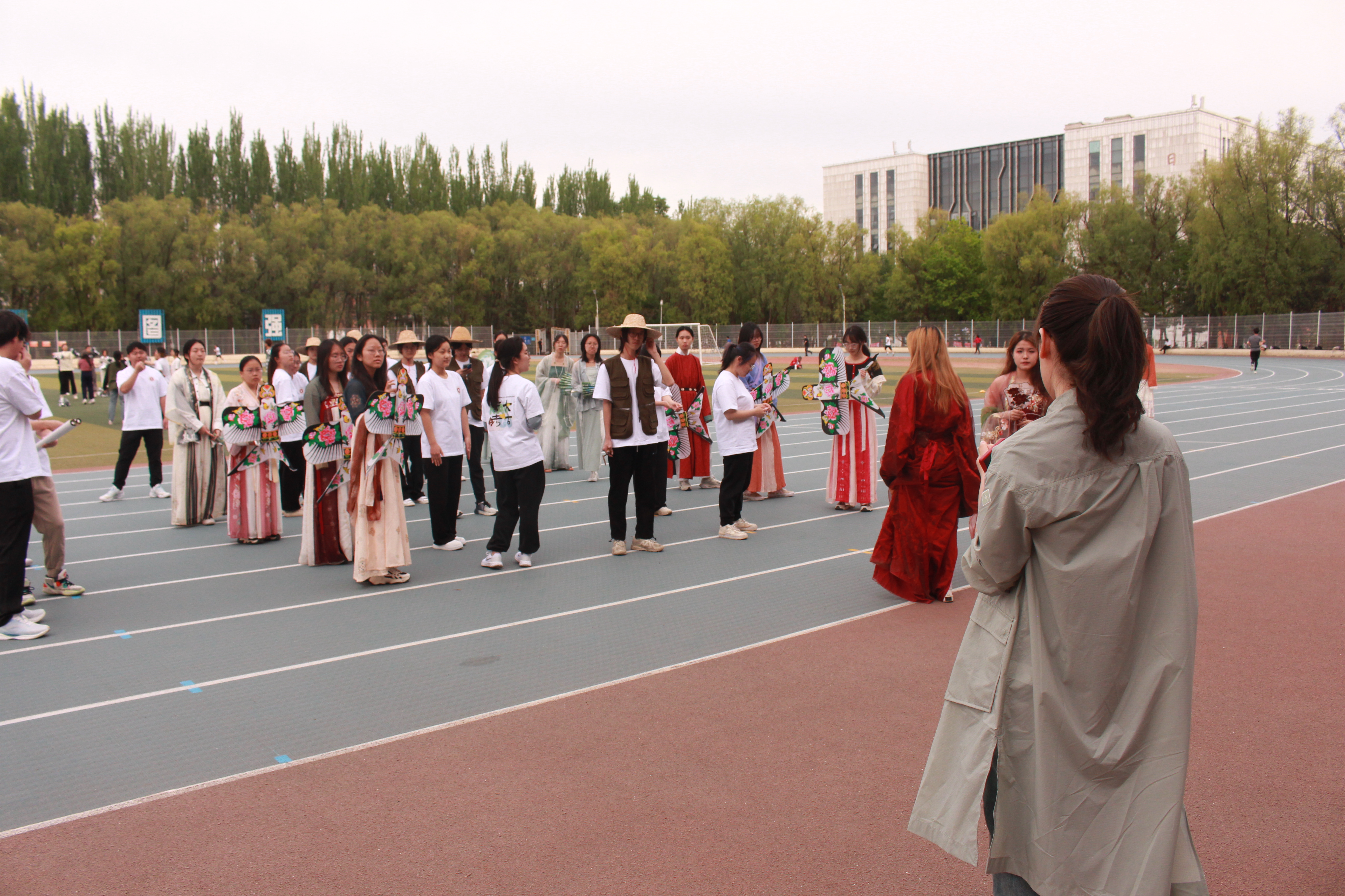 身着汉服的同学不断调整纸伞与纸鸢的展示方式,以期呈现更好的视觉效果。模拟发掘的同学精益求精,修改动作错误,展现考古学人求实求真的严谨态度。