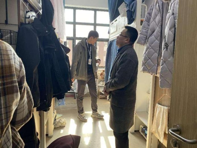检查过程中,侯建峰书记叮嘱研究生注意用电安全,注意寝室卫生,打造安全、舒适的寝室环境。嘱咐假期离长同学注意安全,预防各类电信诈骗和网络诈骗。