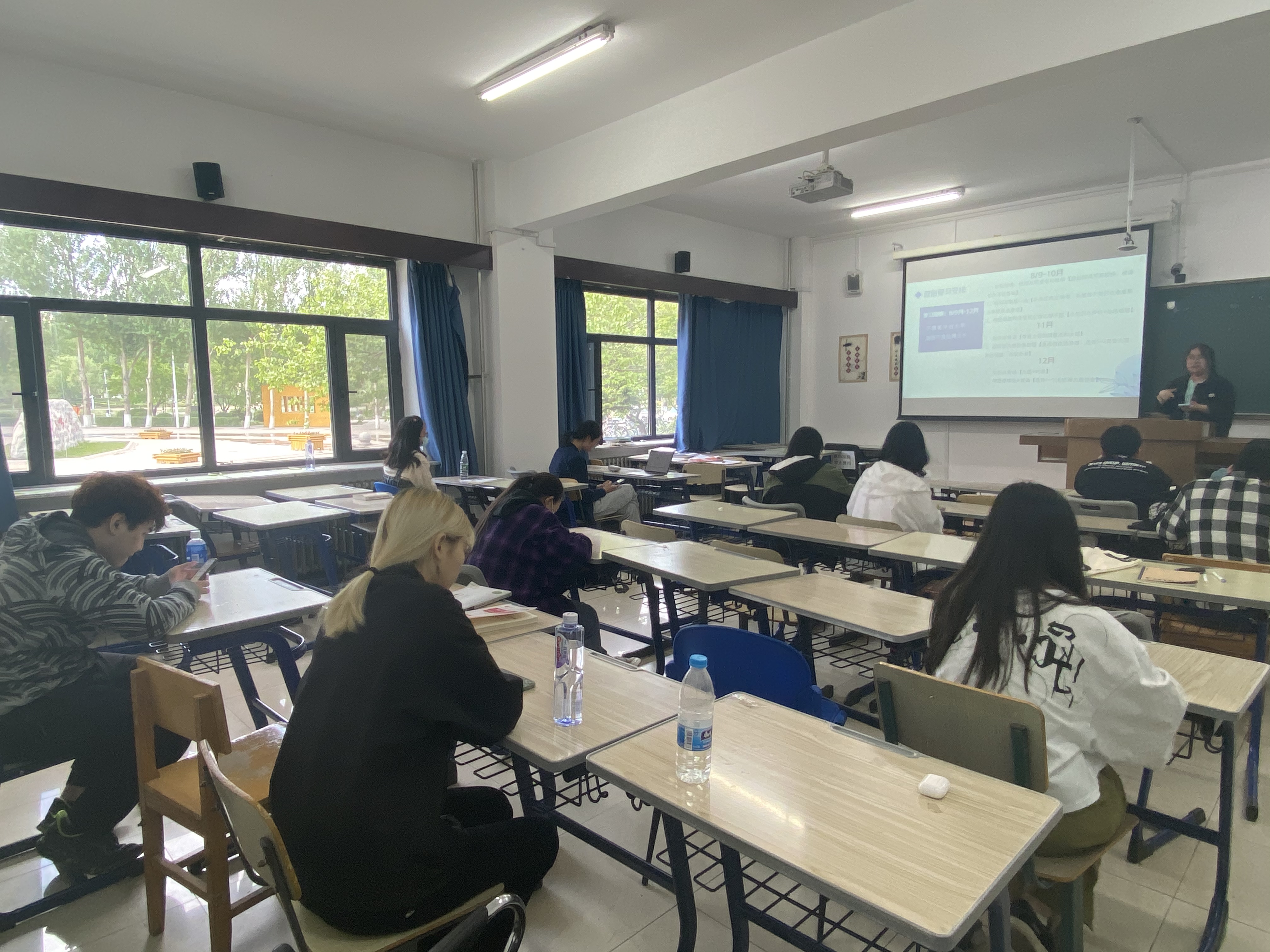 徐畅萱同学首先介绍了本校研究生的招生方向,然后以时间为轴线将考研分为准备阶段、攻坚阶段和冲刺阶段,并分别讲解了每一阶段的复习流程和经验。最后,她还准备了初试和复试的小贴士与同学们分享。