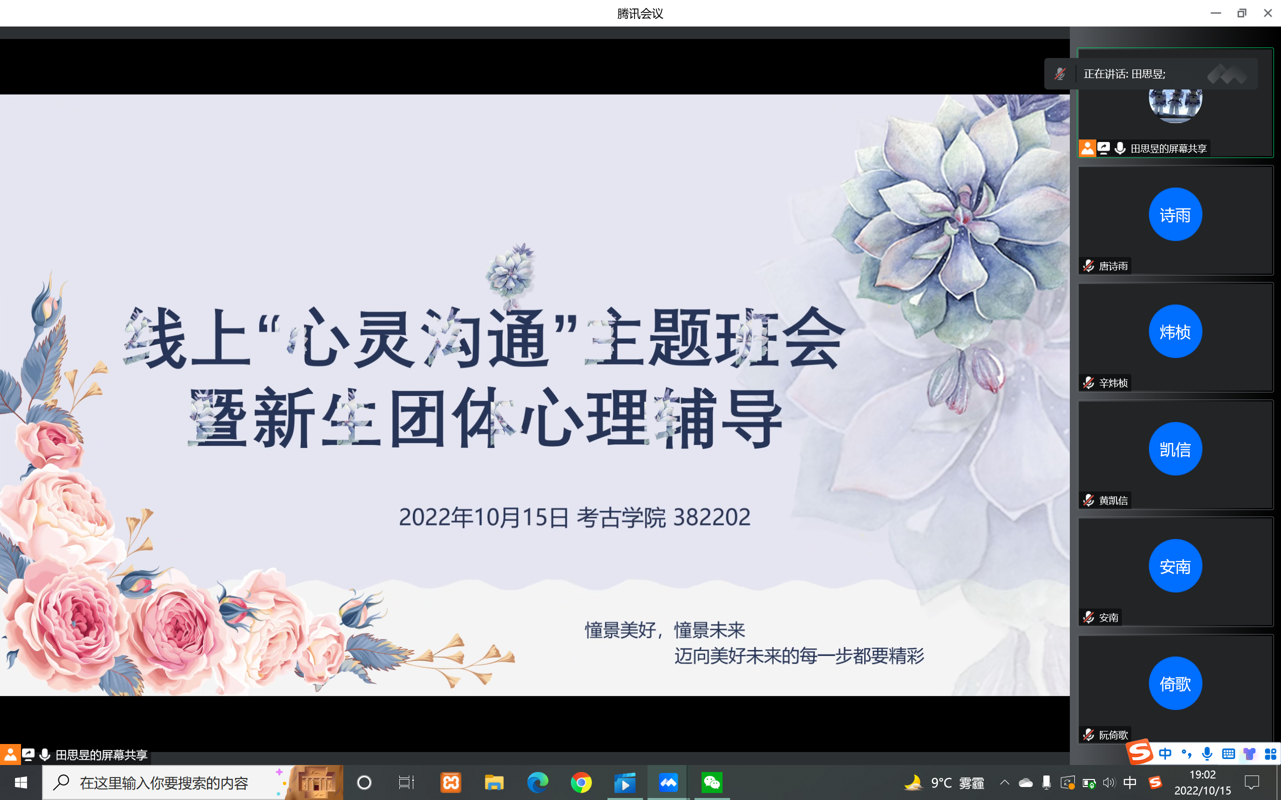 10月15日,2022级2班开展线上“心灵沟通”主题班会,由朋辈心理辅导员带领同学们顺利完成了此次线上班会。