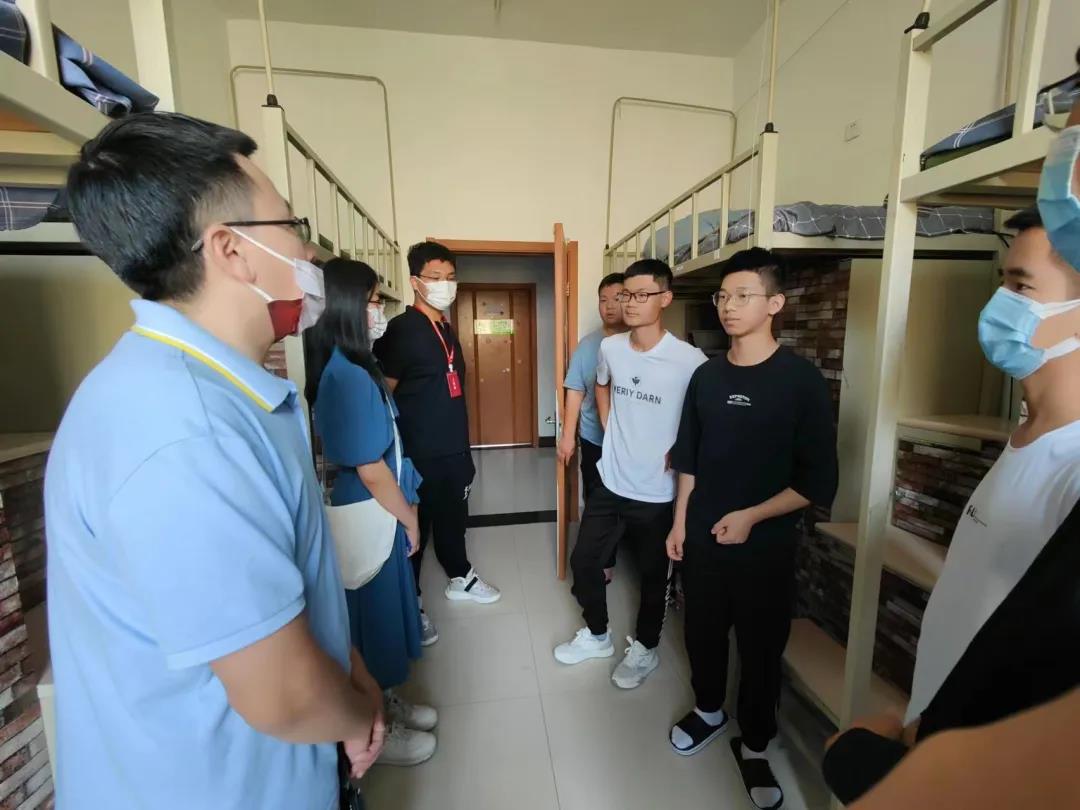 探访队伍走进每一间新生寝室,悉心查看了同学们的住宿环境,与同学们进行了亲切的交谈。他们细心询问了同学们来自的省份,询问同学们是否适应新的生活环境、是否适应校园生活,与同学们就生活和学习等方面的问题进行了深入交流,并叮嘱同学要及时向老师反映生活中的遇到的困难,老师们会帮助大家及时解决。同学们对老师无微不至的关心表示了感谢,一致表示对宿舍条件很满意,对自己选择的专业有很深的兴趣,对未来的老员工活充满了期待。