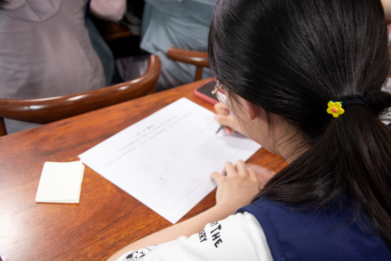 活动伊始,汤老师指出:实习过程中,员工心理一般会经历开始时兴奋、新奇、冲击的新鲜期,逐渐适应工作后的困扰期,接着进入充实、适应的融入期,实习结尾则是充满收获、留恋与解脱的告别期。在“压力调试”模块,汤老师结合视频使同学们全面认识压力的正反两面作用,并对如何识别和对待正常的压力反应作了讲解。随后,同学们通过现场扫码,填写压力知觉量表,自测压力。伴随着舒缓的音乐,大家在精心设计好的图纸中绘出或填写最近遇到的各种压力使其可视化,据以检测生活中的压力,评估自身的抗压能力。最后汤老师强调,压力是可控的,它来源于人的失控感与紧张感,同学们应当通过拉长时空维度、转换思维视角的方式对压力进行自我反思,并通过缓解紧张感的正念练习,克服压力所带来的消极影响,使其转化为我们前进的动力。