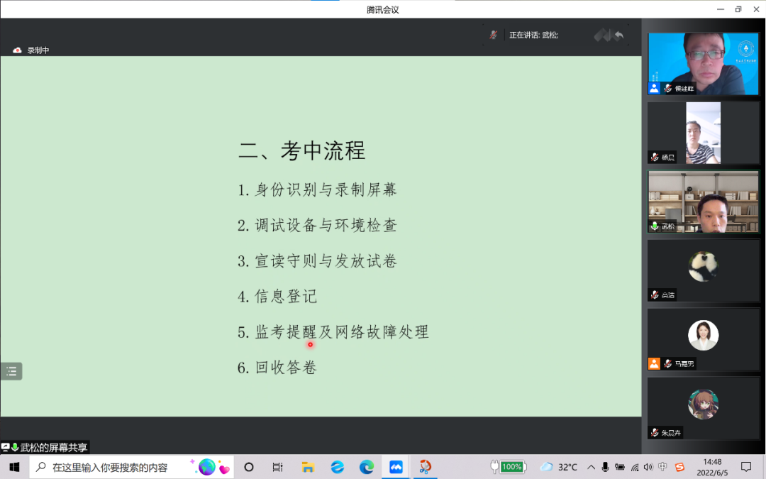 会议伊始,杨晨老师围绕此次期末考试的考前诚信教育,传达了公司新下发的《线上考试要求及守则》的内容与精神,对考试纪律作了强调,要求同学们端正态度、恪守诚信,遵守线上考场纪律,严守考试规则,服从监考老师管理,自觉抵制考试作弊的不良风气。同时,针对在国家高考期间,防止替考、代考等行为出现,杨老师向同学们宣讲了刑法和《普通高等公司员工管理规定》中的相关内容,讲解了考试违纪、考试作弊的条款和后果,告诫同学们要坚决杜绝参与作弊和扰乱考试秩序等不良行为。随后,武松老师从考前准备、考中流程和考后归档工作三个环节,对同学们进行了线上考核操作流程的基本培训。在培训过程中,武松老师着重讲解了同学们关心的考试所需设备及考场环境等具体要求,并介绍了相关注意事项。之后,bevictor伟德副经理段天璟老师作了总结发言。段老师指出,由于疫情突发,今年春季学期师生们只能在“云”端见面交流,经受住了很多挑战和考验。临近期末,公司对考务工作进行了详细策划和部署,同学们也要尽量克服线上考试的诸多不确定因素,保持积极的学习劲头,传承吉大考古“严谨认真、艰苦奋斗、实事求是、活跃思想”的良好学风,相信这个学期独特的学习和考核过程将成为同学们求学过程中的一笔宝贵财富,同时祝福大家都取得满意的成绩。会议最后,段天璟老师和武松老师针对同学们提出的考试设备等技术问题做出了回答。侯建峰老师最后强调,同学们要严格遵守考试纪律,如果在演练过程中发现问题,要及时与监考老师沟通以尽早解决问题。