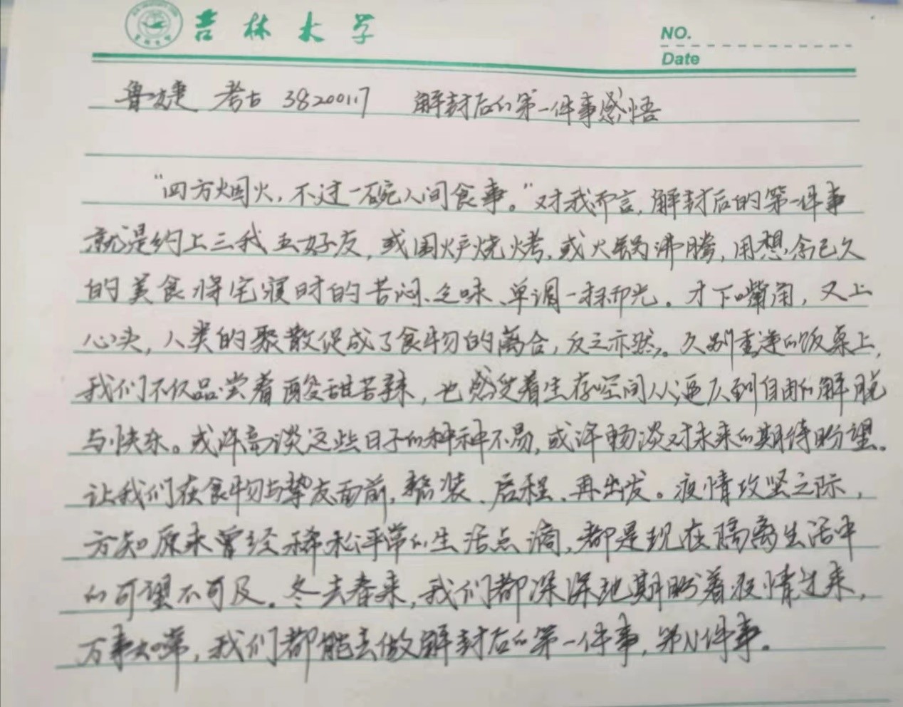 于平宗同学说他最想做的事不是以疫情之名行过于放纵的事,而只需握紧平凡,拥抱生活。那些所有不能结束的沉沦以及那些所有的失去必定会以更美好的方式归来。