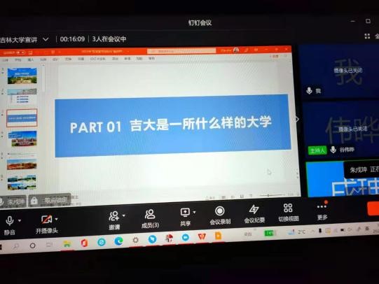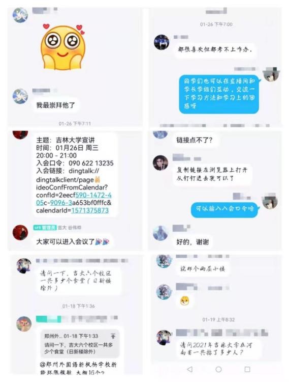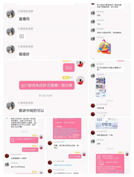 活动之初,张一曼同学联系了高中老师及其他宣讲成员,建立了招生宣讲群,商议了具体宣讲时间和活动安排,以及宣传海报制作、宣讲注意事项等细节。根据高三员工疫情居家期间多采用钉钉上网课的情况,宣讲队确定采用钉钉会议线上宣讲的方式进行宣讲。