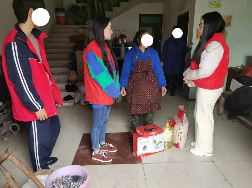 上午9点,她与协会成员们从江西省乐平市市政府出发,分成两个小组,分别前往双田镇、乐港镇、后港镇等乡镇走访部分贫困户。协会成员为贫困户准备了一些慰问品,有大米、食用油、纯牛奶、暖水袋等生活用品。一个小时后,小队成功抵达了第一个走访对象家中。受到帮扶的奶奶与小朋友对协会成员的到来表示感激。在发下慰问品,了解了老人的生活情况后,大家继续乘车前往下一个地点。