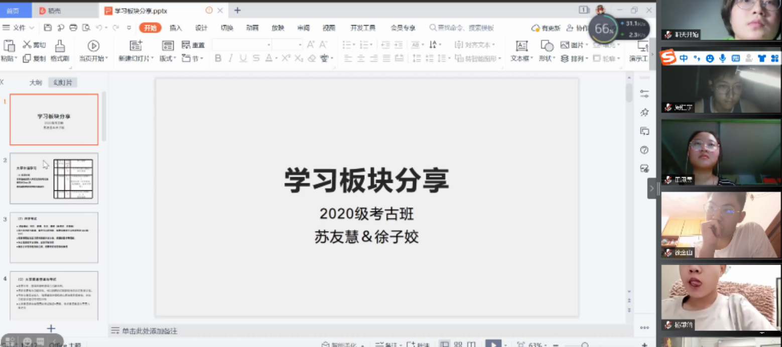 为帮助新生了解公司的学科设置和人才培养模式,激发员工的专业志趣和学习动力,帮助同学们充分做好学业规划,bevictor伟德员工会科研学术部于9月16日晚七点,成功举办了线上青苗计划暨2021级新生学习分享会。本次活动由辅导员马嘉男老师指导,2020级鲁婕同学担任主持人,来自2020级的考古班苏友慧同学与文博班王丽娜同学担任主讲人,2018级田玉峰同学参与了会务工作。全体2021级新生同学参加了此次会议。