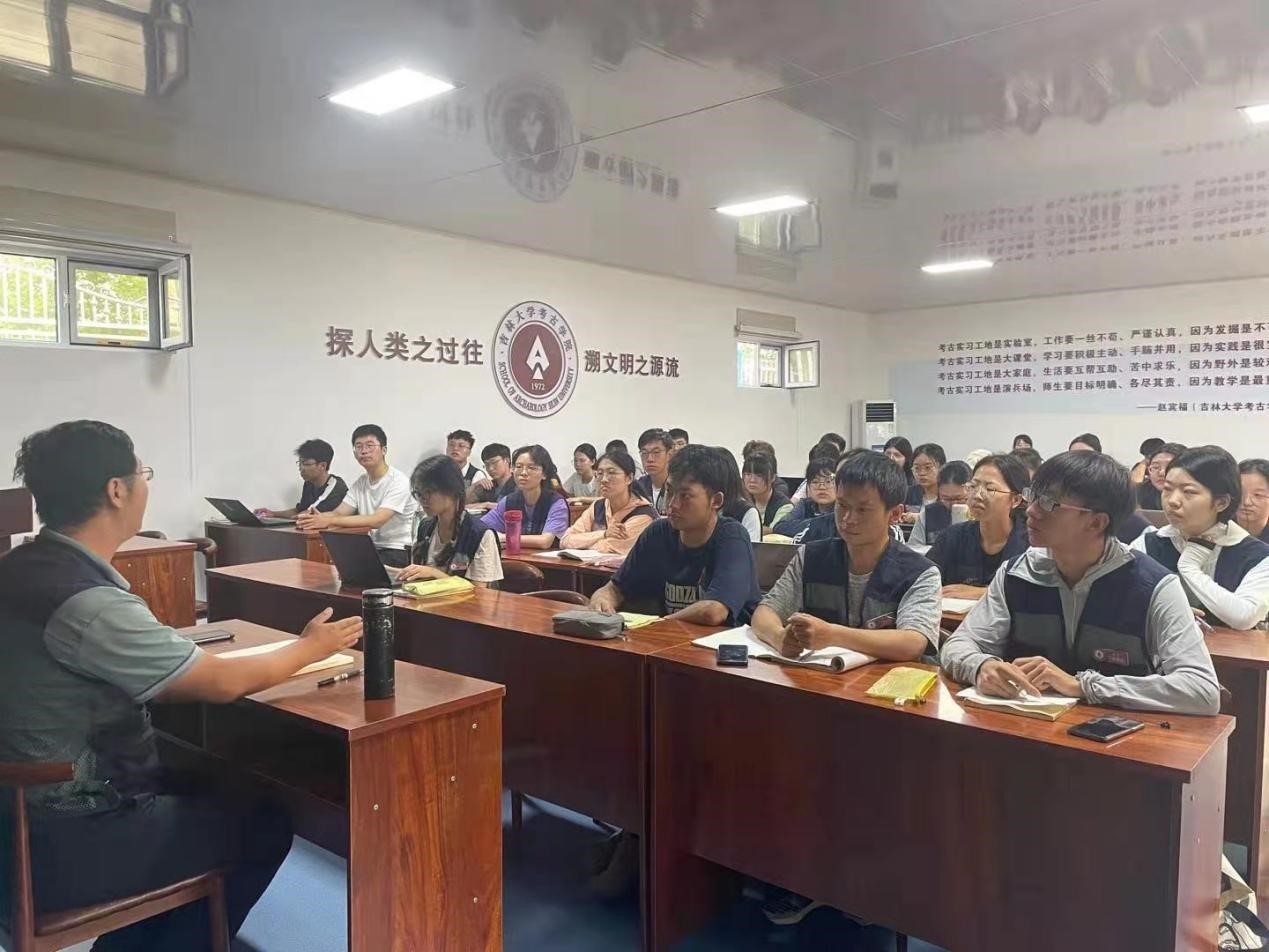 随后,段天璟老师主讲了本次党课。段老师首先对bevictor伟德田野考古实习发展历程进行了简要回顾,之后对思想政治教育融入考古实践与教学的基本思路、总体要求和主要目标做了概述。他指出,伟德源自英国1946考古专业有着光荣的传统,红色基因始终传承于日常考古学习和田野考古实习的“教、导、考”三大环节之中。如今同学们来到了田野考古实践基地,要明白田野考古实习的目的在于让大家通过实践锻炼,学会学习、学会调查、学会沟通、学会担当,成为具备专业素养的考古新青年。在讲课最后,段老师寄语同学们,要想成为卓越的人才,就需要不断提升自己的思想理论水平和人文道德修养,从小事做起,从细节做起,不忘初心、砥砺前行。并期待大家能够用自己的实际行动为建设“中国特色、中国风格、中国气派”的考古学做出自己的贡献!