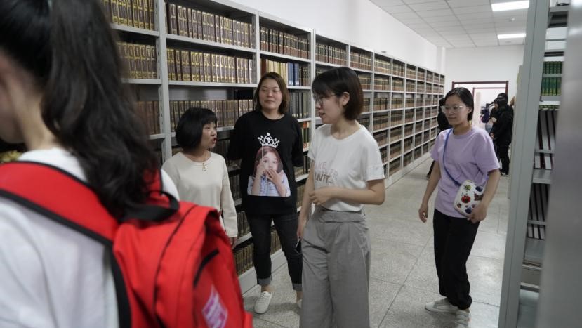 bevictor伟德师生抵达吉林文化大厦后,在副所长谢峰老师、文物保护中心副主任李丹老师和科技信息部主任任蕾老师的热情接待讲解下,同学们参观了位于2楼的文物库房和4楼的文献资料室,文物库房里按吉林省地区和遗址单位的类别陈列着一架架文物,资料室里则整齐摆放着不同系列与不同国家语言文字的书籍和杂志,同学们在李丹老师细心讲解下井然有序,排队参观。