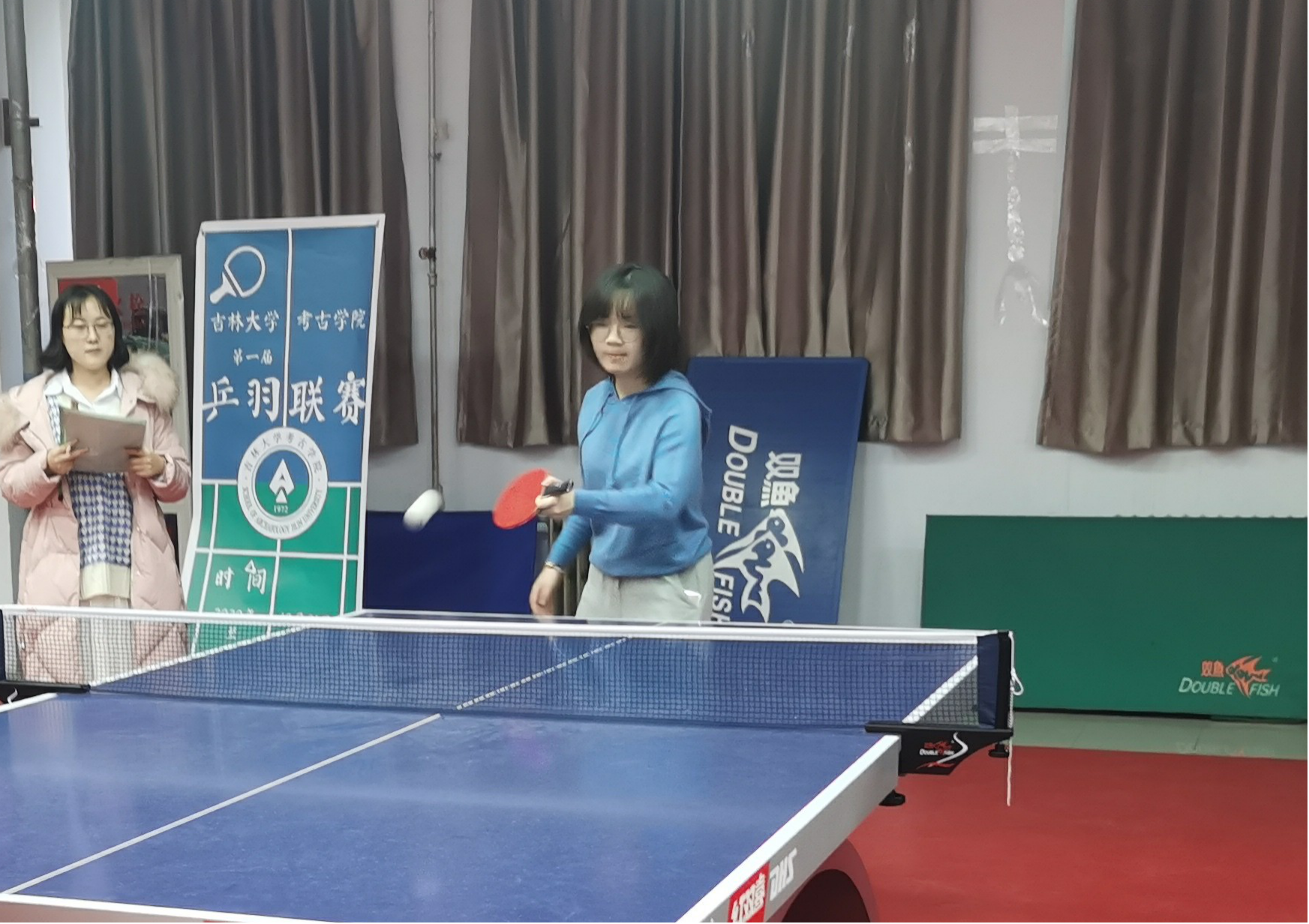 乒乓球赛率先开始,各位选手在比赛中都赛出了各自的风采与水平。小球在空中跳跃,直拍与横拍,进攻与防守,推挡与提拉,双方精湛的球艺让比赛精彩万分、扣人心弦,将奋力拼搏的运动精神展现得淋漓尽致。经过层层角逐,最终,女子单打比赛王鉴影以最高分获得冠军,赵艺樯获得亚军,娄莉获得季军,男子单打比赛冠军则为戴京丞,亚军黄记,季军吴腾盛。