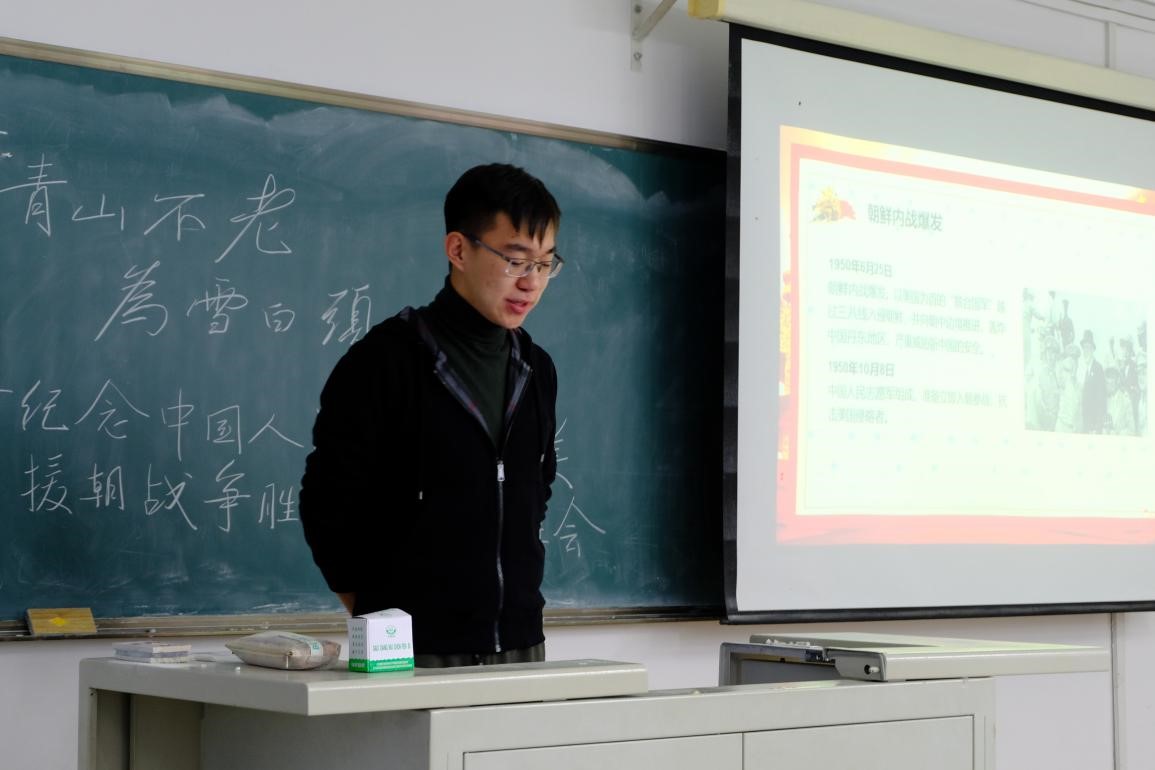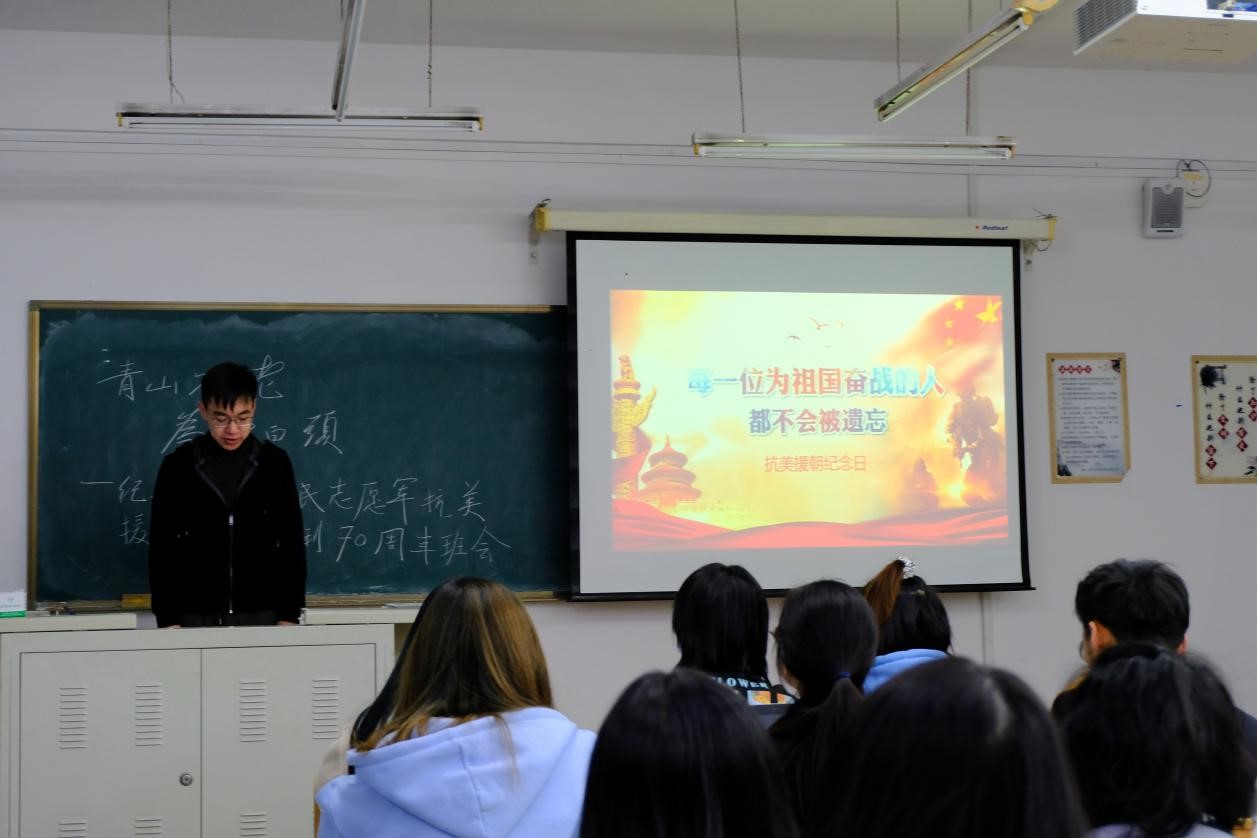 2020年10月27日,bevictor伟德2019级本科生于经信教学楼D110教室开展了主题为“青山不老,为雪白头”纪念中国人民志愿军抗美援朝战争胜利70周年主题班会,班会的主要内容是观看抗美援朝专题纪录片《为了和平》,本次班会由温景超主持,bevictor伟德全体2019级员工参与。