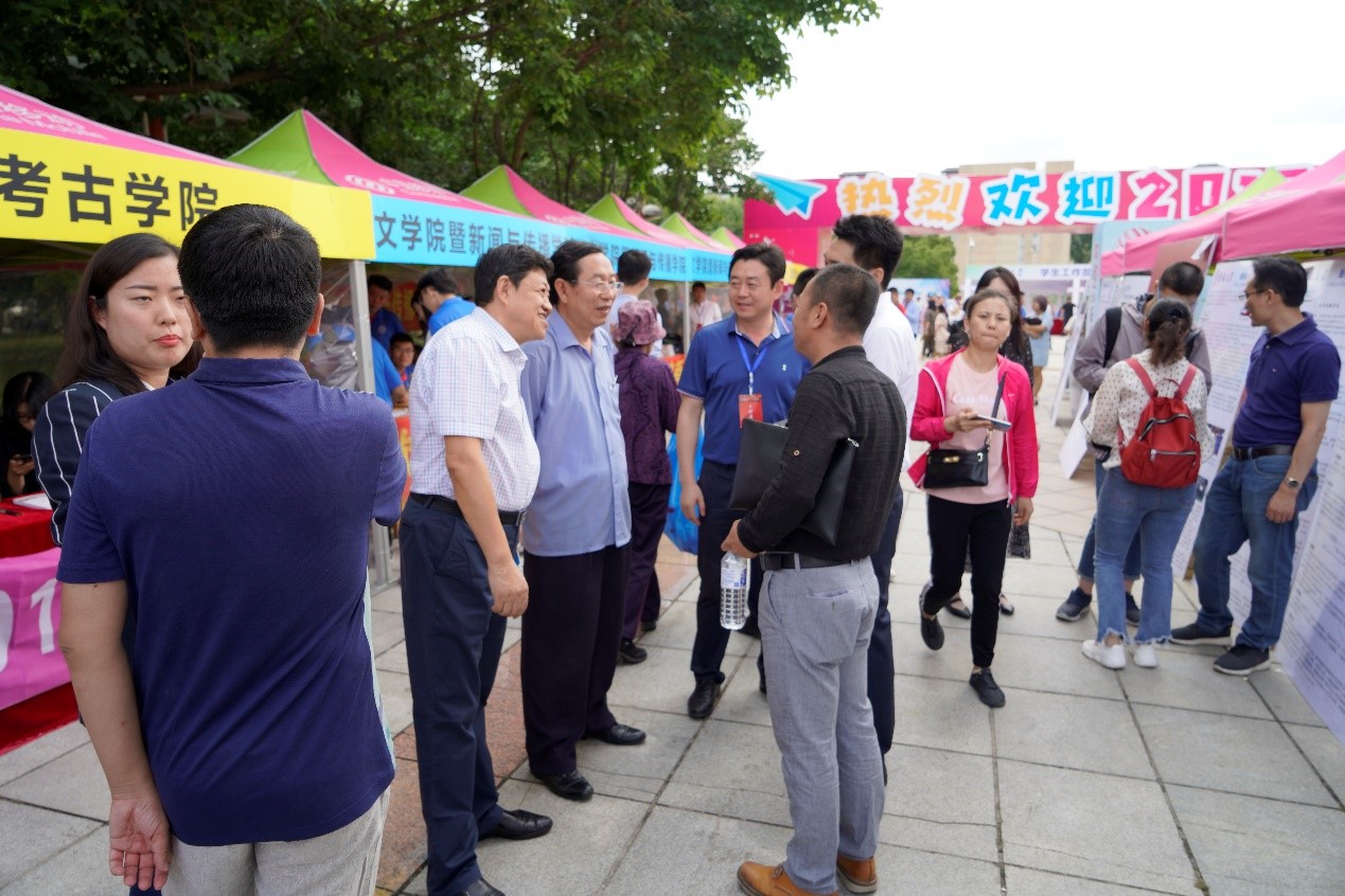 在迎新工作的间隙,赵宾福经理,李宏伟书记,侯建峰副书记,杨晨主任等院领导与新生,家长及志愿者代表亲切座谈,畅谈人生规划,学科发展等问题,并对坚守一线的值班志愿者对同学们表示慰问和关怀。