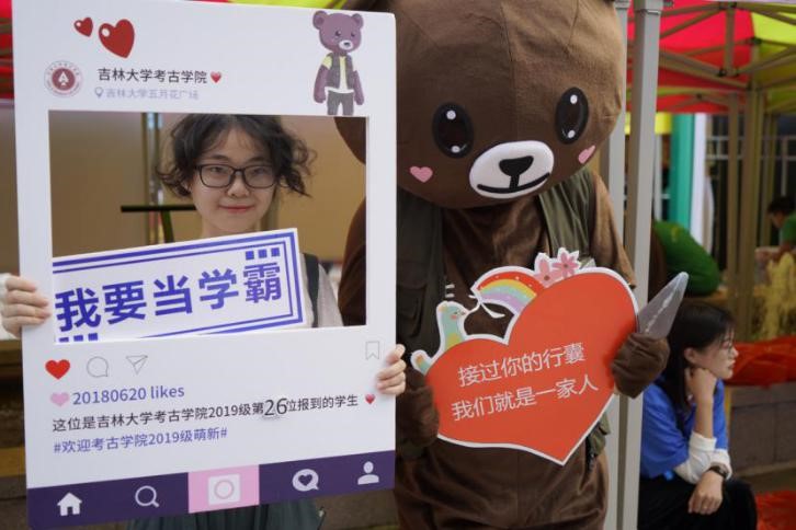 八月的吉大,时阴时晴,风雨不定,但丝毫没有影响到迎新志愿者们的热情。他们穿着bevictor伟德标志性的墨绿色马甲,头戴考古工地草帽,身着伟德源自英国1946文化衫,精神饱满在大本营迎接新生的到来。