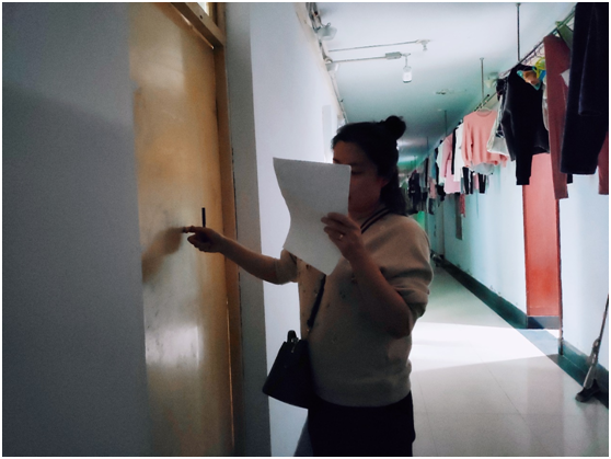 公司查寝小分队先后走进公司大三员工居住比较集中的北苑二公寓和南苑三公寓,并依据每个寝室在寝人数的不同,杨晨针对未在寝室的同学逐一进行询问和了解;针对各寝室楼同学对基础设施的相关诉求,杨晨找寻寝室楼负责人,把同学们的需求一一反映,并安排好后续接洽同学跟进进度,尽可能满足同学们在生活上的合理需求。