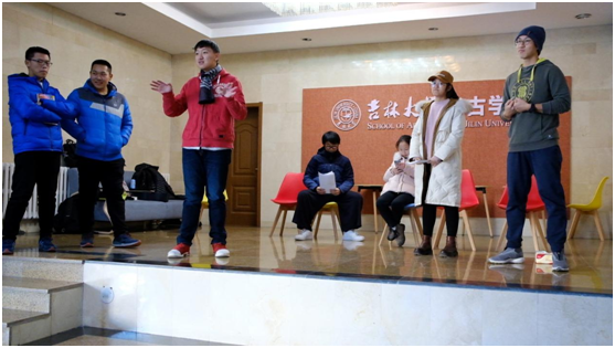 28日中午,节目组对部分歌舞类节目进行审核。首先,7名同学表演手语舞。接着,3名同学表演合唱。最后,7名同学表演团体歌舞。节目组对演出表示赞赏,并提出了相关的修改意见。29日中午,节目组对部分语言类节目进行审核。首先,黄柏林等同学表演了精心修改后的小品。然后,刘金鑫同学与参演人员展开了对小品内容和表演细节方面的讨论,提供了一些看法,并对其进行勉励。