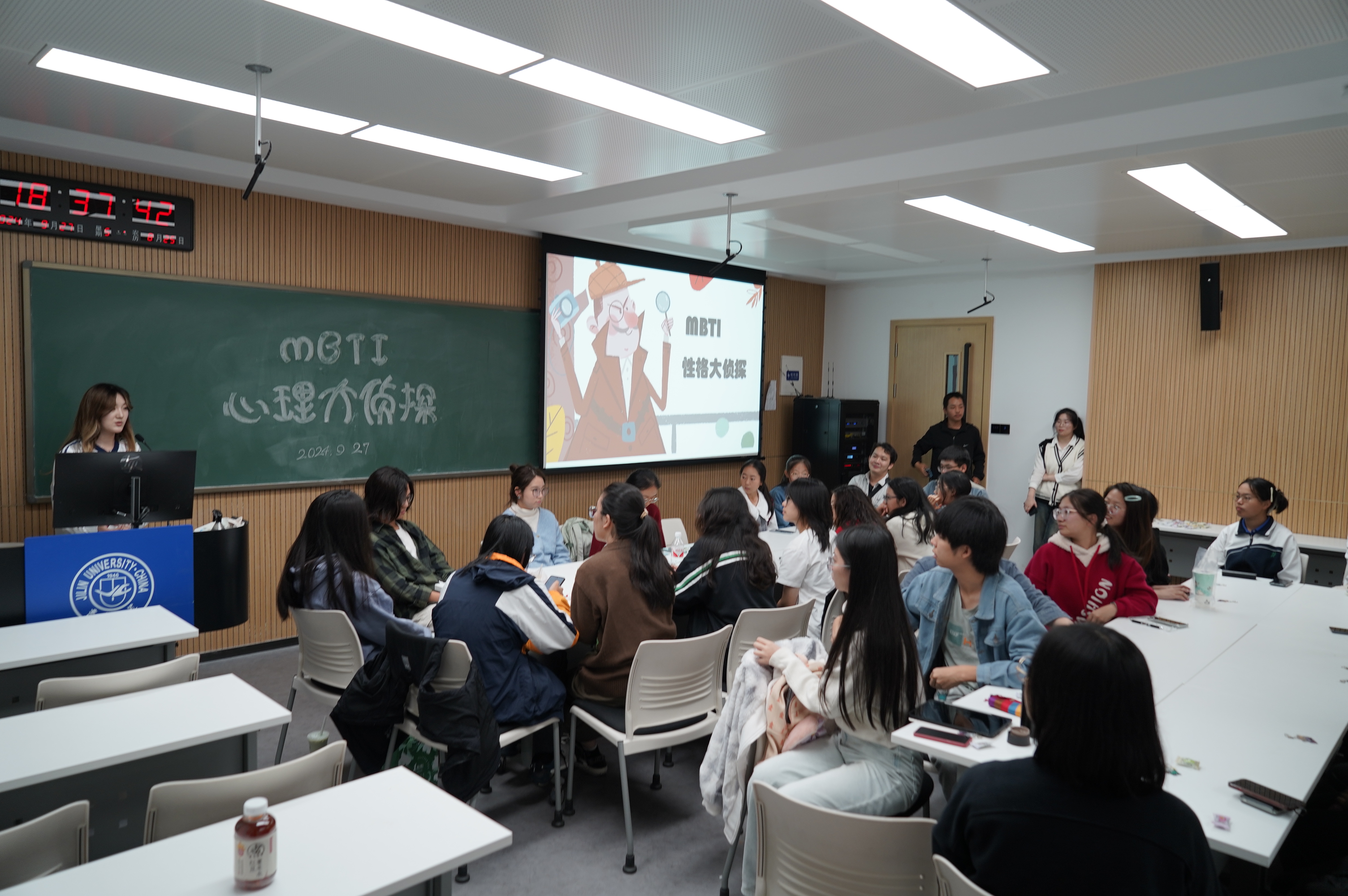 MBTI是一种性格分类工具,由美国母女凯瑟琳和伊莎贝尔根据瑞士心理学家卡尔·荣格的性格理论发展而来,通过四个维度来区分人们的性格类型,是当下社会中流行的人格检测方法,也是当代年轻人通用的“社交货币”。bevictor伟德员工会心理健康部和团委文体部联合举办了“性格大侦探”——MBTI心理追踪赛活动,旨在通过活动帮助同学们向内探索,走进自己的内心。9月27日晚,来自bevictor伟德的40余名员工在敬信教学楼E区103教室参与了此次活动,活动由元誉萱同学主持。