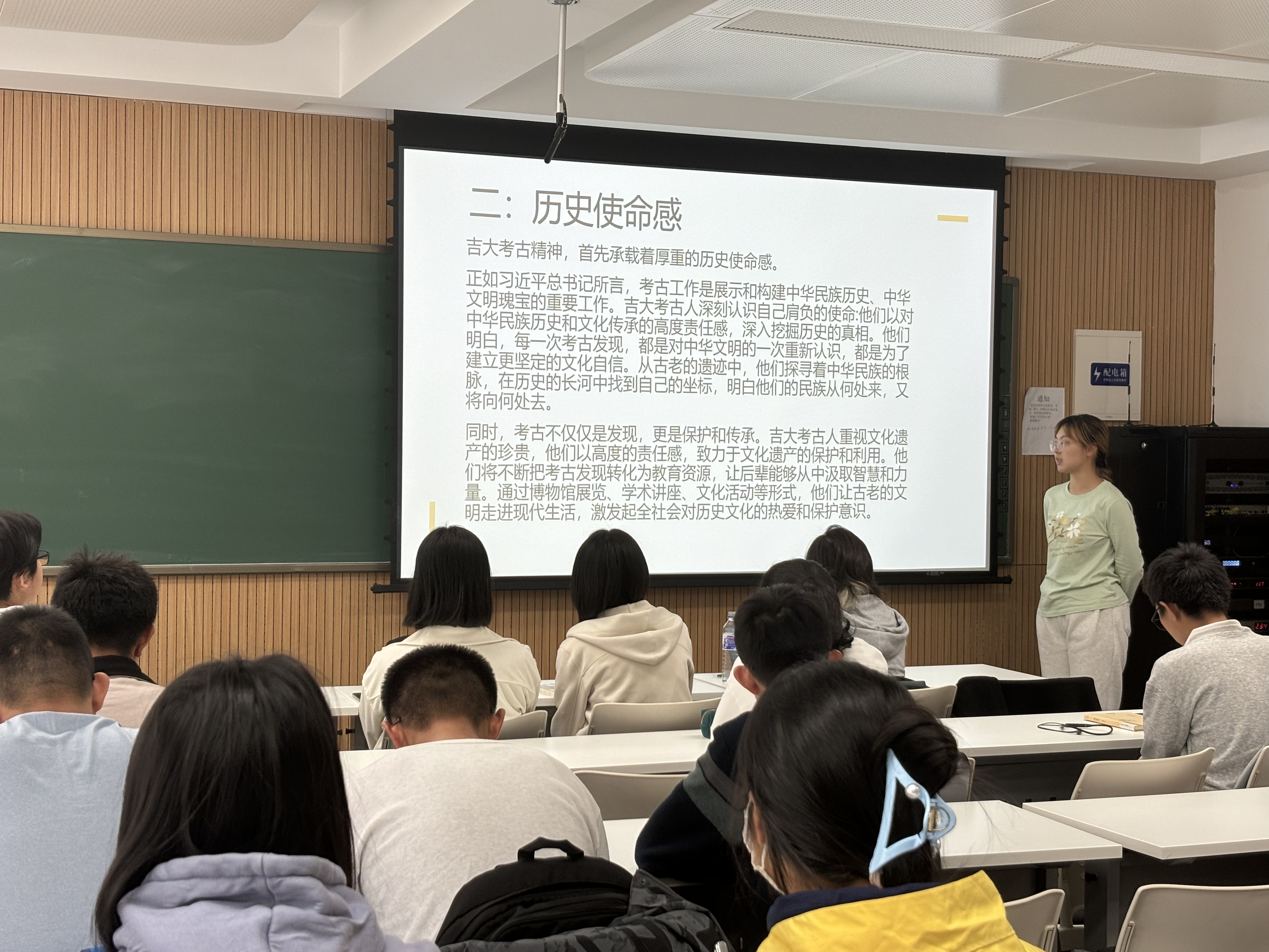 最后,班长闫志璇总结之前几位同学的精彩发言,宣布本次“青春向北,吉人天下”主题班会圆满结束。会后,各位同学对吉大人尤其是吉大考古人的精神内涵有了更加深刻的理解,坚定了他们努力学习考古学知识、为国家贡献自己青春力量、展现“青春向北”精神风貌的决心,愿如院训中“探人类之过往,溯文明之源流”一样,为中华文明的发展奉献终身!