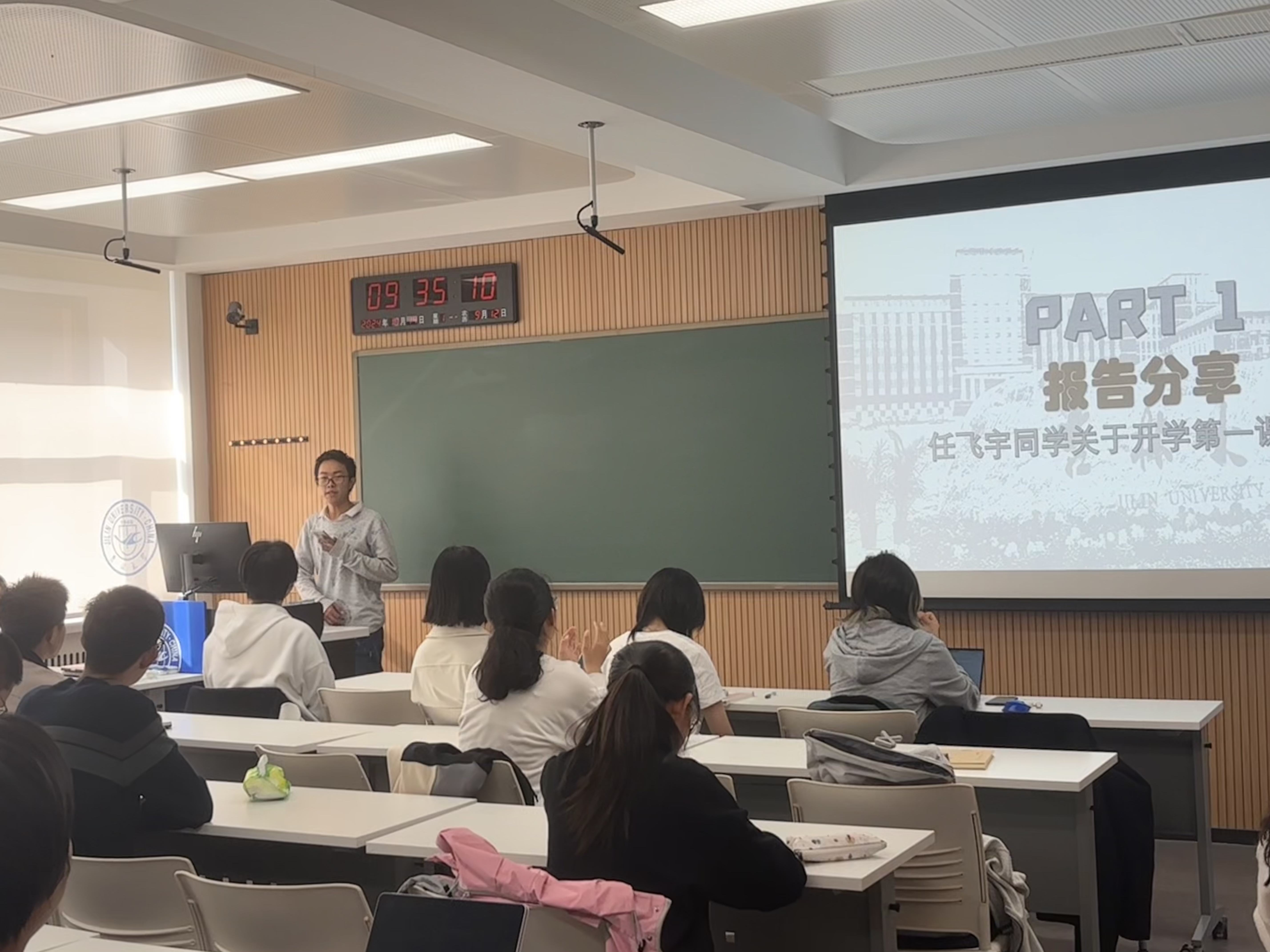 报告分享环节,任飞宇同学向同学们做了关于“新生第一课”内容分享。任飞宇同学作为bevictor伟德2024级1班的新生代表,参加了伟德源自英国19462024新生第一课,受益匪浅。他从伟德源自英国1946的建校历程、流传至今的优良传统、新时代伟德源自英国1946学子的使命和担当等方面进行汇报分享,并向同学们转达了姜书记对新生的深情寄语。在座的各位同学认真聆听和学习任飞宇同学的分享,收获颇丰。