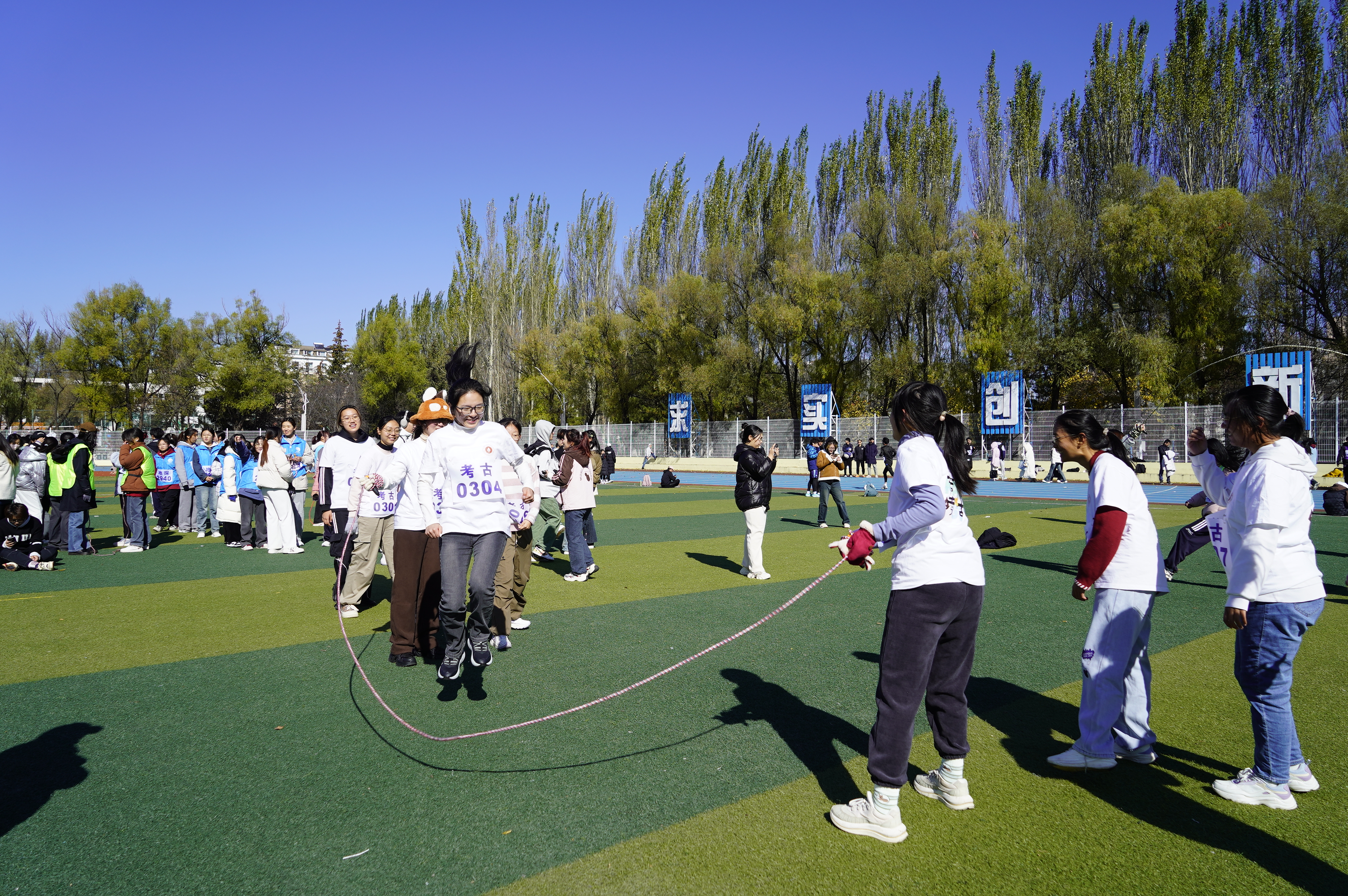 团体项目方面,同学们积极参与到了三分钟10人8字跳绳项目中。赛场上,她们团结自信,彰显了bevictor伟德学子的凝聚力与向心力。
