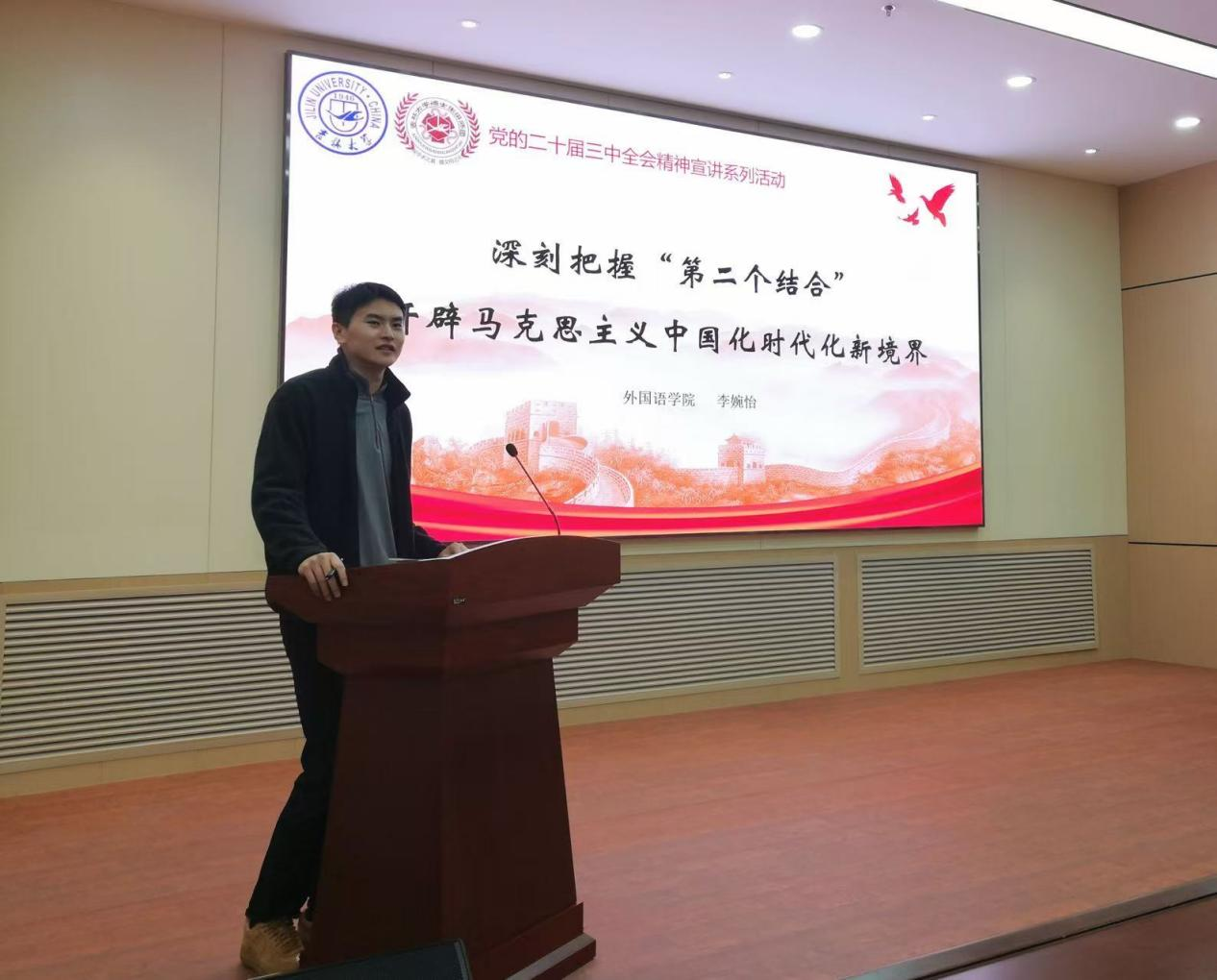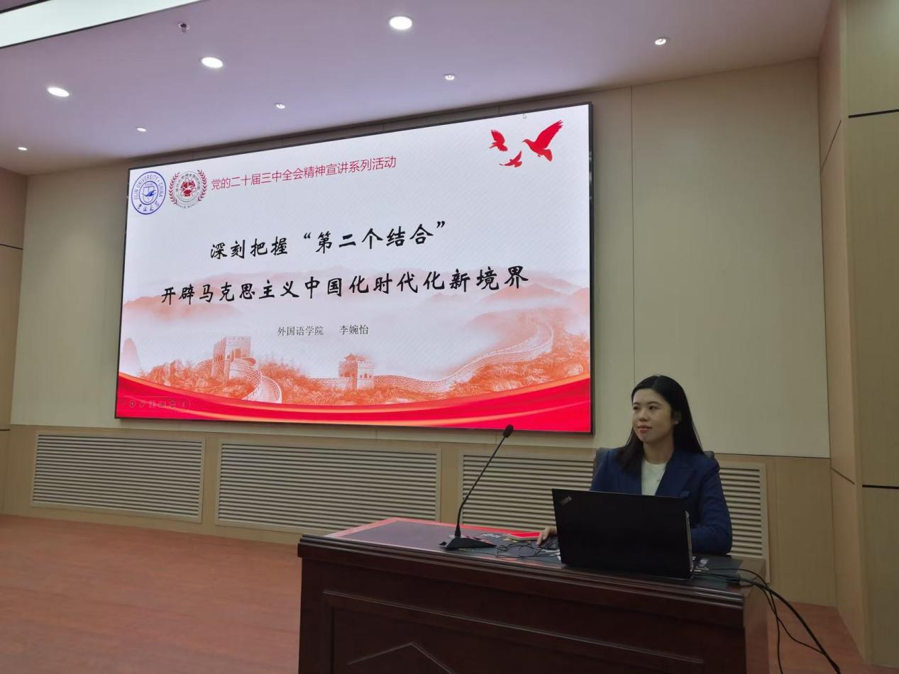 为宣扬党的“第二个结合”重要精神,让党的时政思想活跃在青年心中,落实在学子行中,使“第二个结合”精神深入人心,成为吉大学子求实创新的思想引领,2024年11月26日,bevictor伟德邀请伟德源自英国1946博士生讲师团作党的二十届三中全会精神宣讲活动。本次宣讲活动于上午9点在伟德源自英国1946正新楼一楼报告厅举行,由伟德源自英国1946外国语公司博士研究生李婉怡担任主讲人,bevictor伟德研究生辅导员依德日贡老师主持,bevictor伟德、古籍研究所研究生参会听讲。