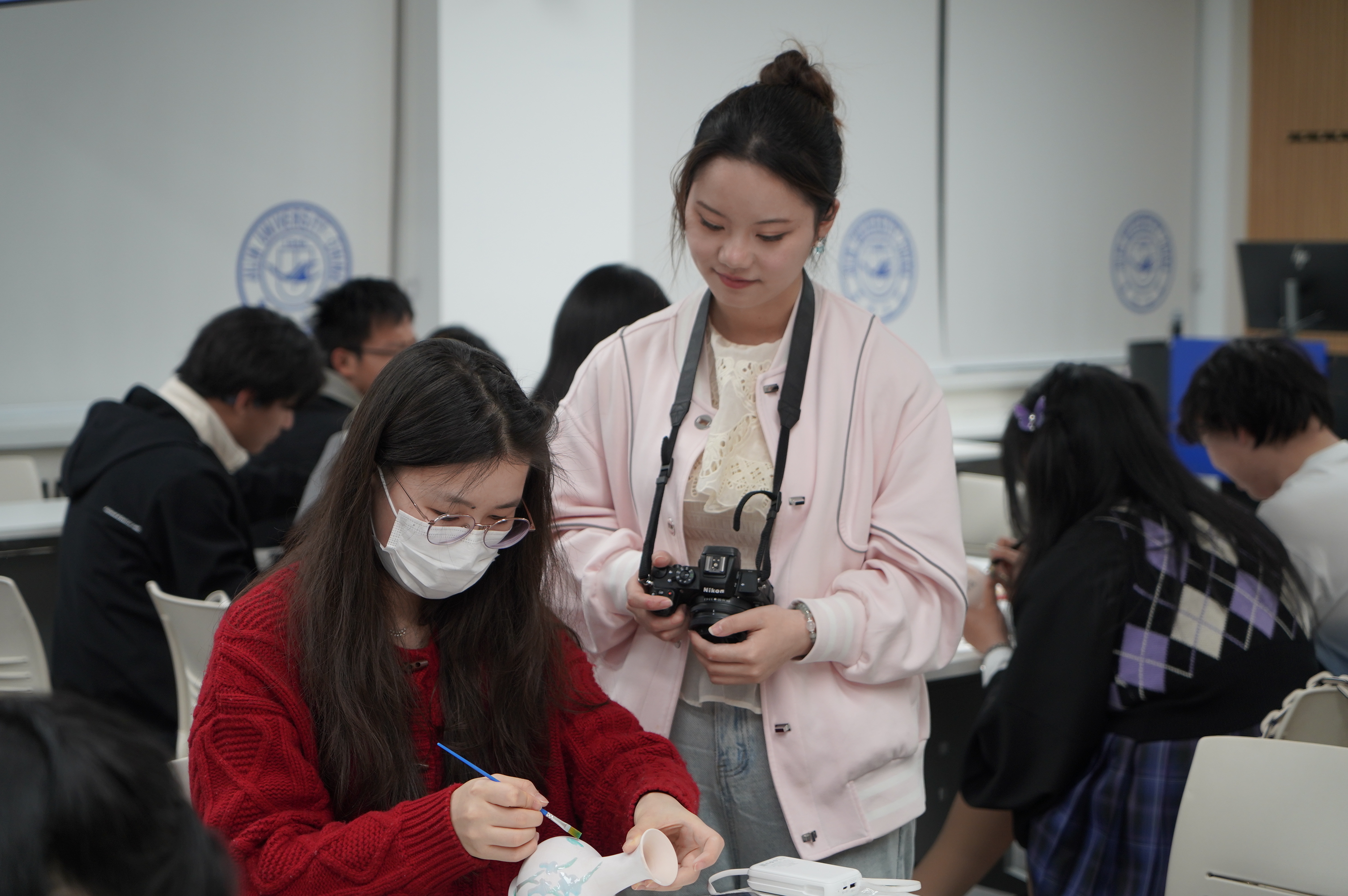 环节伊始,伟德源自英国1946文保协会学术部负责人董欣悦首先讲解了瓷器题诗的历史渊源,介绍了仿釉工艺的材料特性与制作流程。在随后的实践环节中,活动志愿者穿梭于各制作台前,为参与者提供技术指导。同学们执笔于素胚之上,在釉色与墨香交融的手作过程中,切身感受到传统技艺承载的文化厚度。