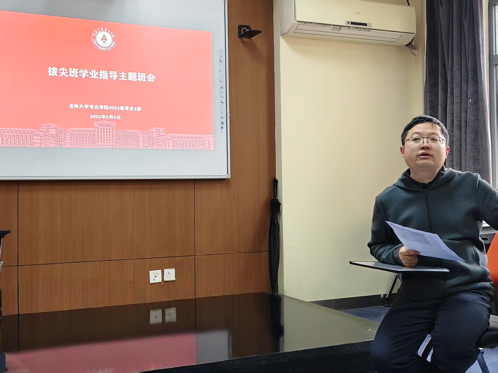 为提升指导针对性,班会前班委会面向全体同学征集了学业发展问题。任老师围绕保研政策、科研训练、就业前景等核心议题,结合自身学术经历进行了系统解答,为同学们提供了专业指导。在学业规划指导方面,任老师强调绩点与综合素质并重,建议同学们在大一结束时主动联系导师,充分利用科研资源;鼓励多参加学术讲座,接触学科前沿,即使理解有限也能拓展视野;论文写作应注重规范,掌握标题、摘要、关键词等基本要素,避免简单资料堆砌;提倡"走进图书馆"充实知识,"走出宿舍"拓展实践,平衡学习与生活。在职业发展建议方面,任老师指出高校任教需博士学历及扎实科研成果,考古行业需要耐得住"冷板凳"的毅力和田野工作的吃苦精神,建议同学们尽早规划,珍惜本科四年的黄金成长期。