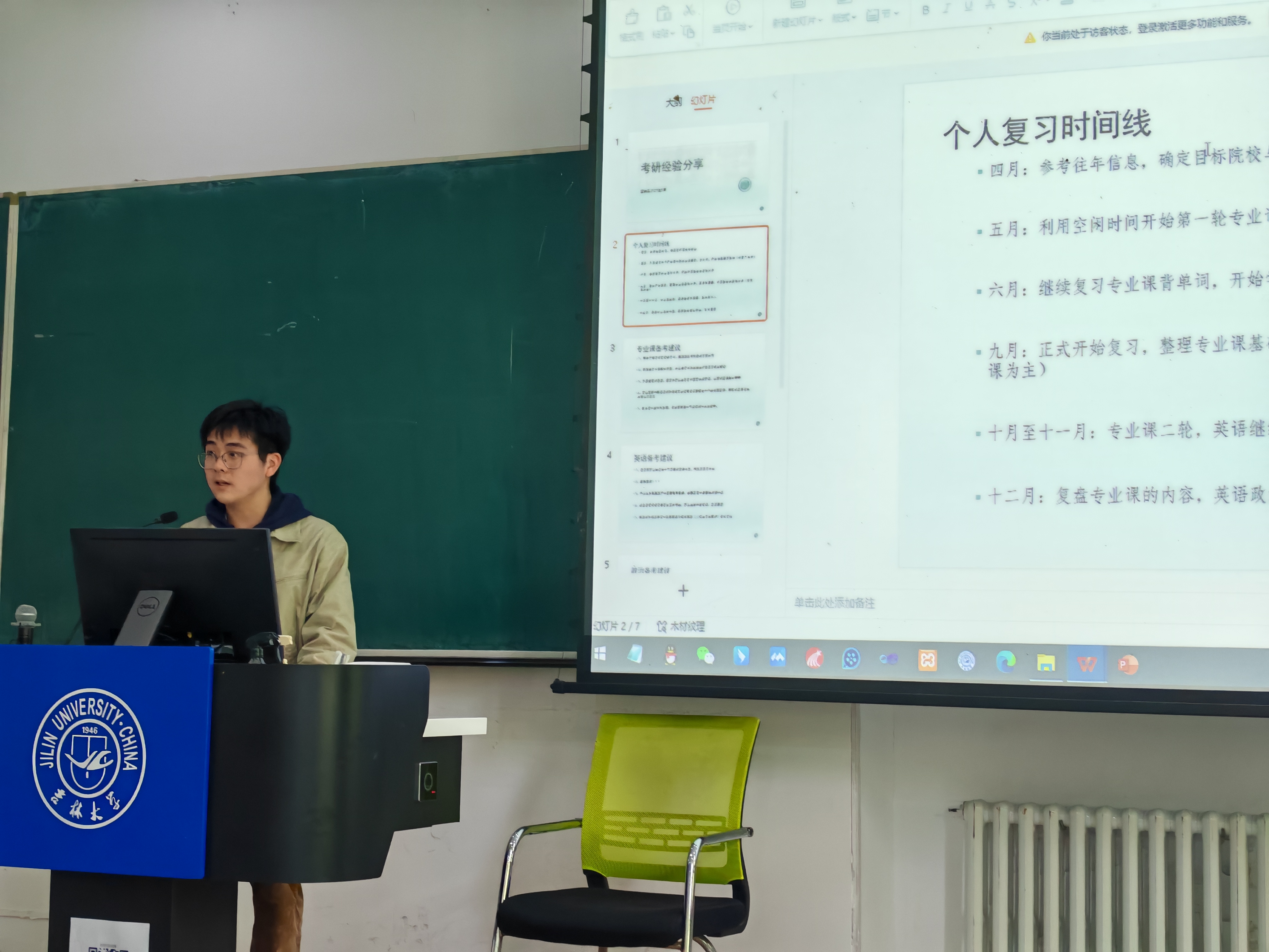 “五月南风起,麦浪覆陇黄”。初夏的风掀起麦浪,也带来了吉大学子考研上岸的讯息。为了帮助同学们了解考研信息,明确努力方向,bevictor伟德于5月17日举办考研专场分享会。本次分享会由bevictor伟德员工会科研学术部负责人朱倩莹主持,2021级本科生王东元、刘震宇、戴思荣、张山峰分享经验。