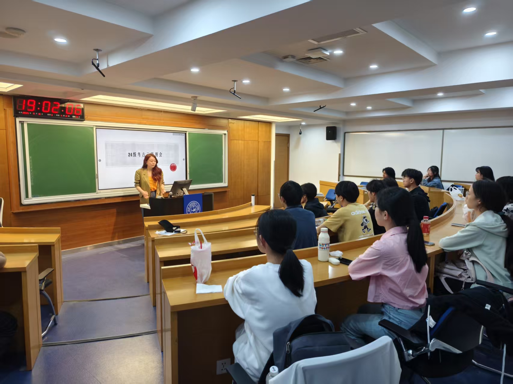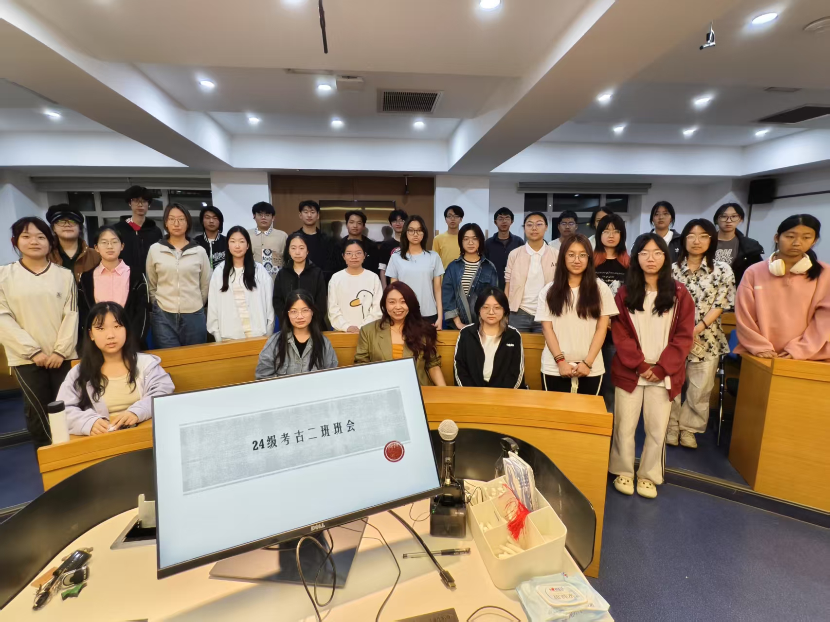 谢却海棠飞尽絮,困人天气日初长。为增进师生交流,做好班级建设,促进同学们深入了解文博行业前沿与实践,2025年5月16日,2024级考古2班于逸夫教学楼202室开展文物保护科普主题班会,班主任冯楠老师和考古2班全体同学参加,会议由班长孙凤涓主持。