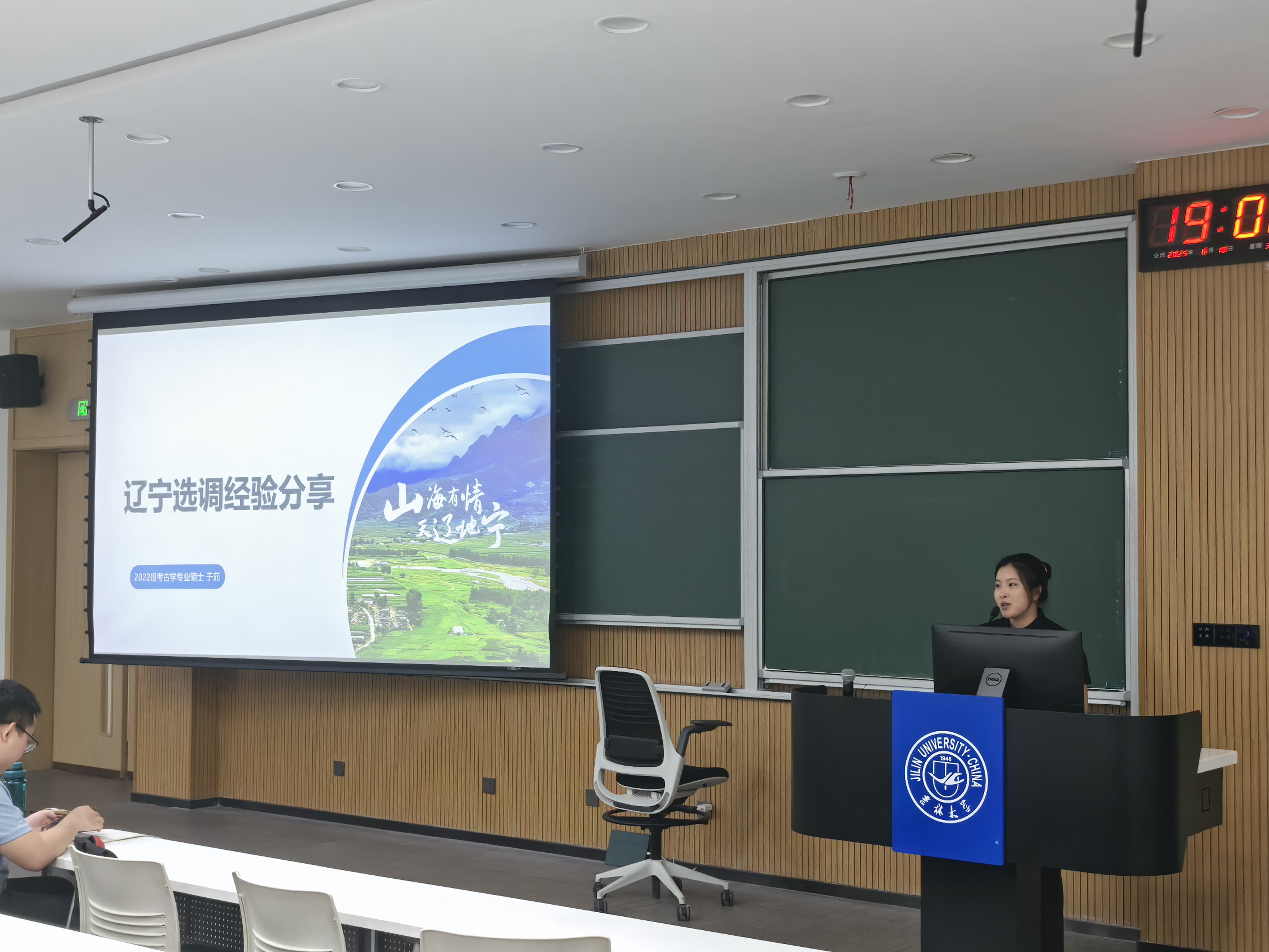 与前面两位在考古领域内就业的同学不同的是,上岸大连市金普新区党工委组织部的于茹同学则为同学们解读了选调生的概念,辽宁省选调相关信息以及参加辽宁省选调的优势等内容。她清晰梳理了从报名到考核配岗再到体检考察的选调过程,并推荐了包括网课、书籍、APP在内的学习资源。最后,她建议准备选调考试的同学们客观评价自己的同时,也要保持良好的心态。