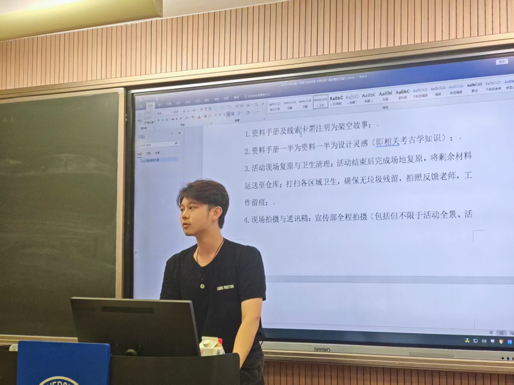 随后,李禹恒系统梳理了本学期整体工作规划,围绕“叩园追古 ·琢器承华”及“青春”遇见“非遗”等特色活动,明确了各项工作的职责分工,并对活动策划案撰写等具体事项提出明确要求。