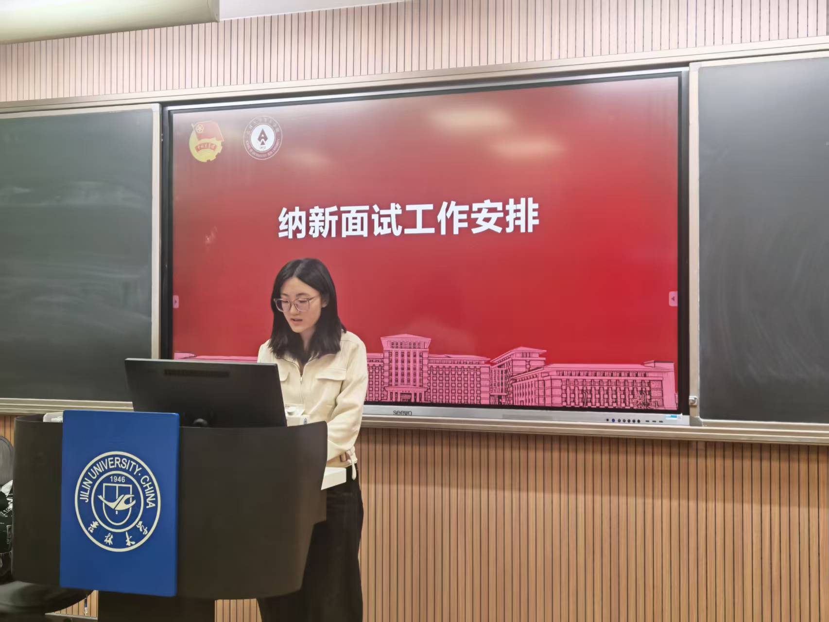 最后,元誉萱汇报了团学组织纳新面试工作安排,详细介绍了纳新模式、时间地点及选拔原则,并就各部门面试问题进行集中评议、修订与确认。